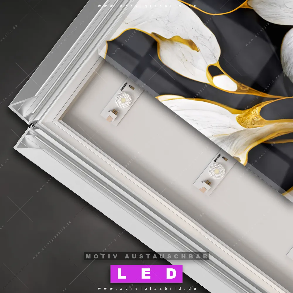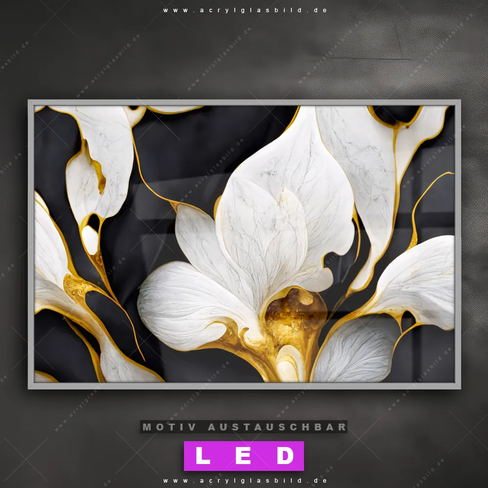 LED Acrylglasbild Canvalight® DIA | Marmor Blüten in weiß & gold | Querformat