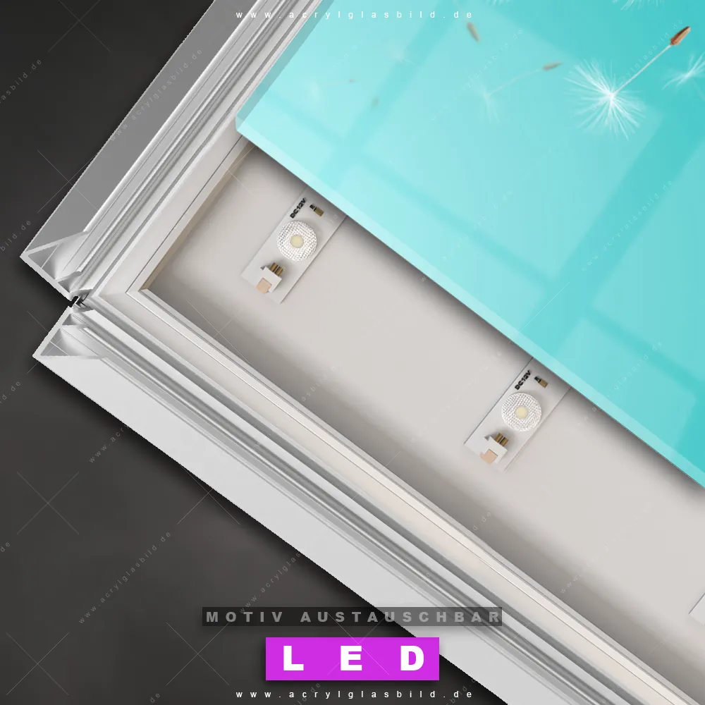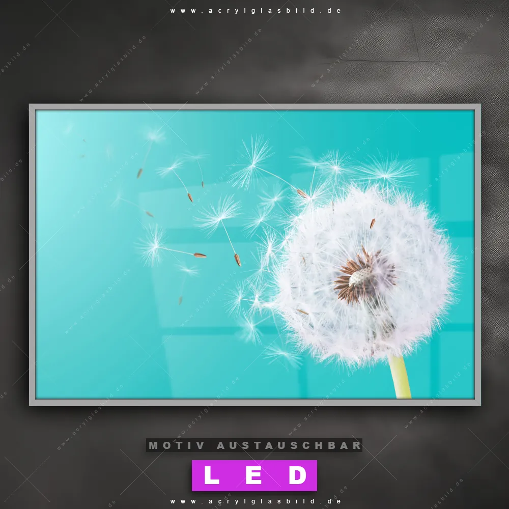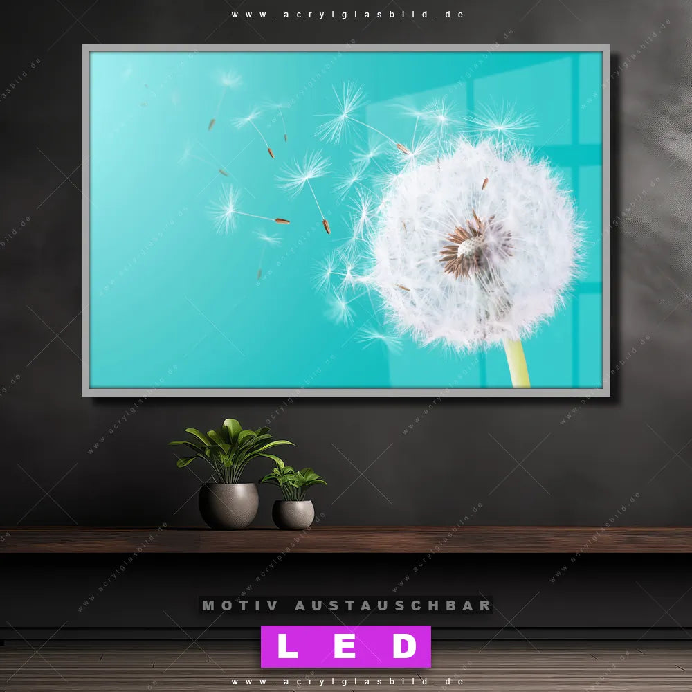 Du bist auf der Suche nach einem dimmbaren Blumen - Botanik LED Bild mit Fernbedienung und optionaler Farbtemperatursteuerung? Dann haben wir hier genau das richtige Wandbild mit LED Beleuchtung für dich: Unser Canvalight® DIA LED Acrylglasbild Pusteblume No. 4 im Querformat mit austauschbarer bedruckter Acrylglas-Scheibe. Dieses Leuchtbild bringt sofort Partybeleuchtung in deine Räume!
