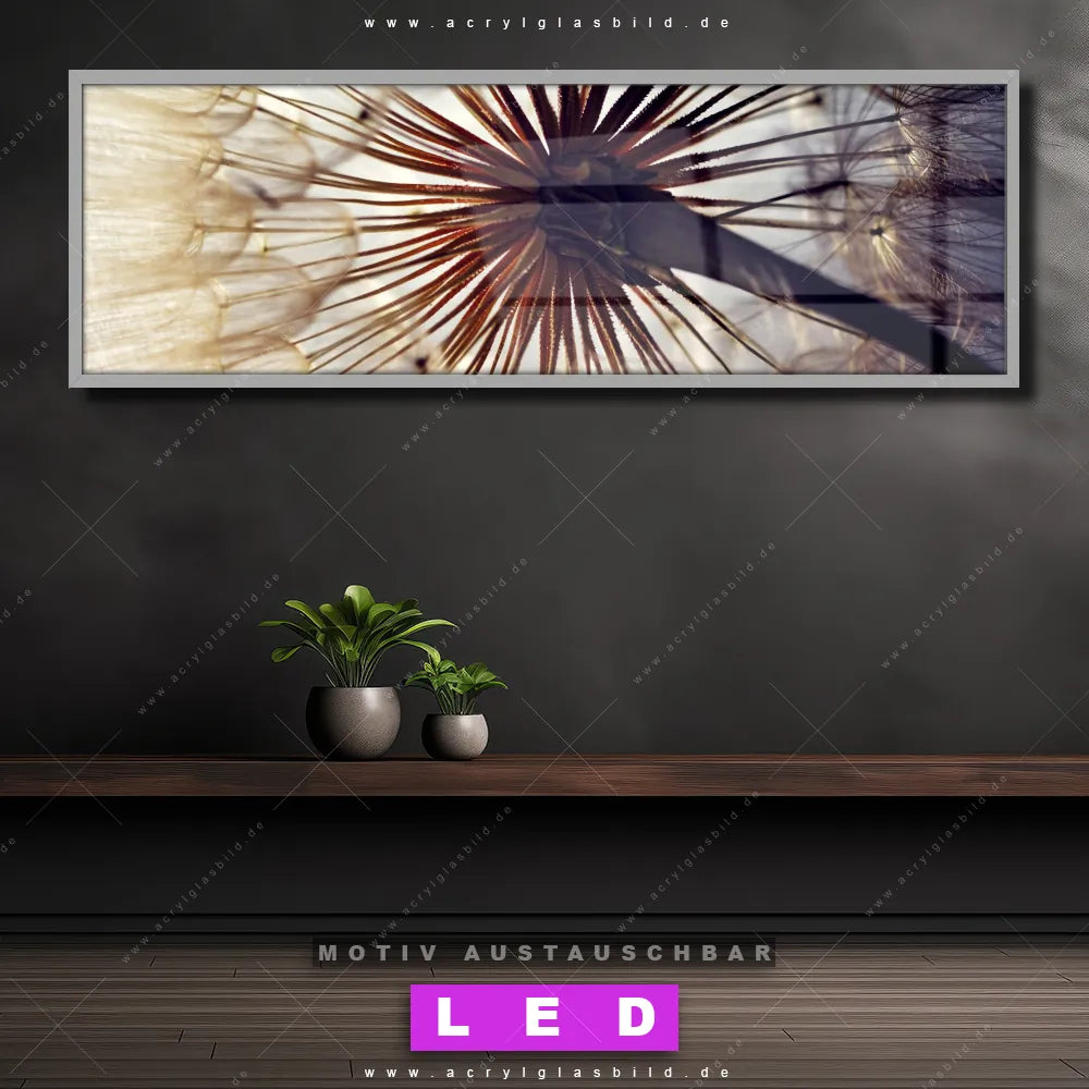 Deine Wände könnten dringend ein dimmbares LED Bild mit Fernbedienung und optionaler Farbtemperatursteuerung gebrauchen? Dann haben wir das perfekte Wandbild mit LED Beleuchtung für dich: unser mega-cooles Blumen - Botanik Canvalight® DIA LED Acrylglasbild! Mit unserem angesagten Leuchtbild aus Acrylglas im Panorama-Format und der austauschbaren bedruckten Acrylglas-Scheibe Pusteblume bringst du nicht nur Licht, sondern auch jede Menge Flair in deine Räume.