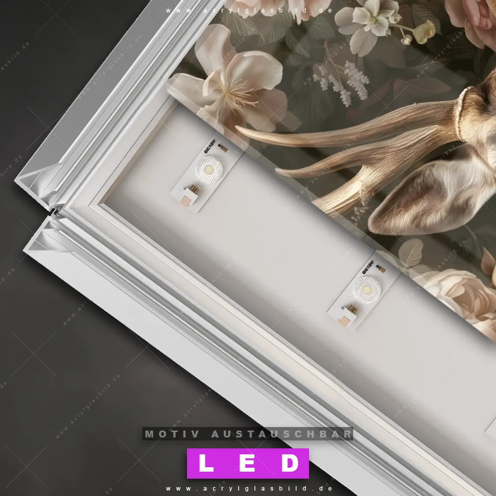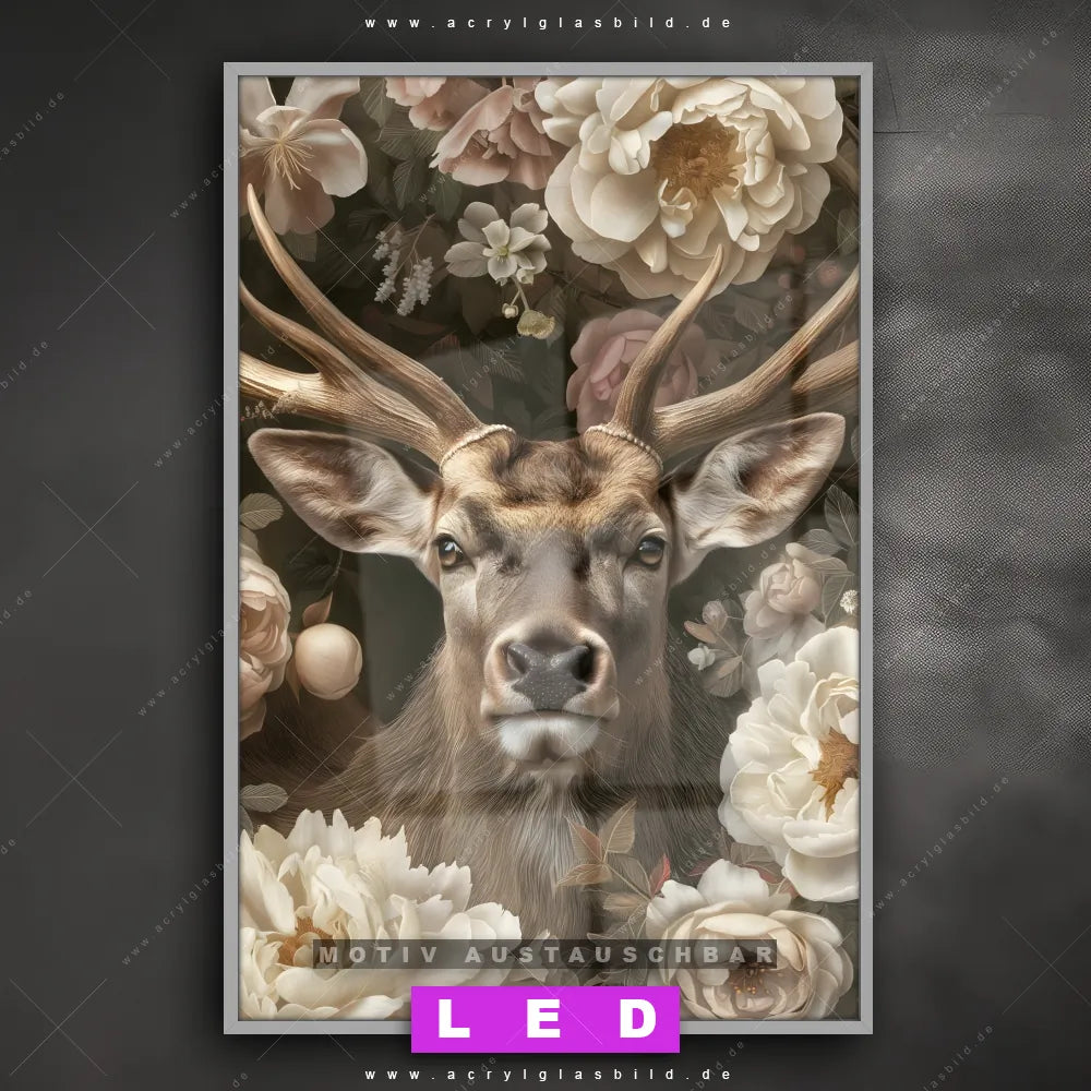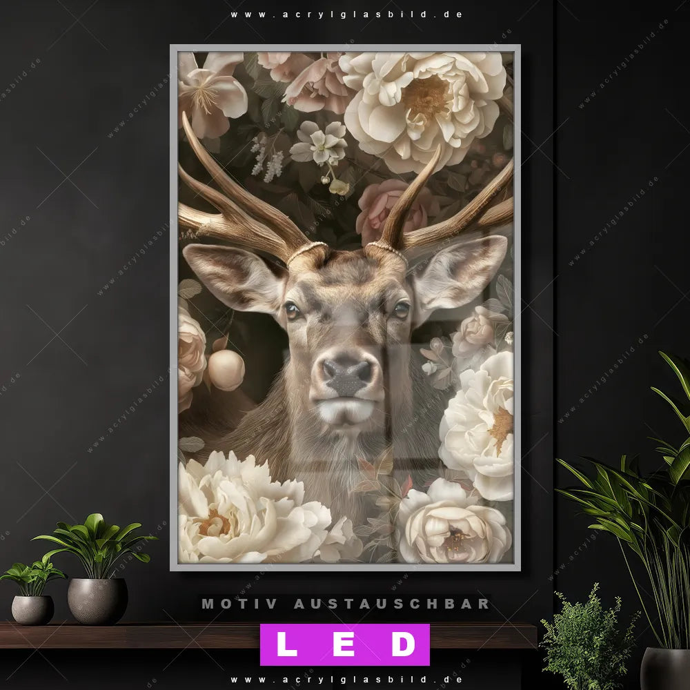 LED Acrylglasbild Canvalight® DIA | Romantischer Hirsch mit Blumen | Hochformat