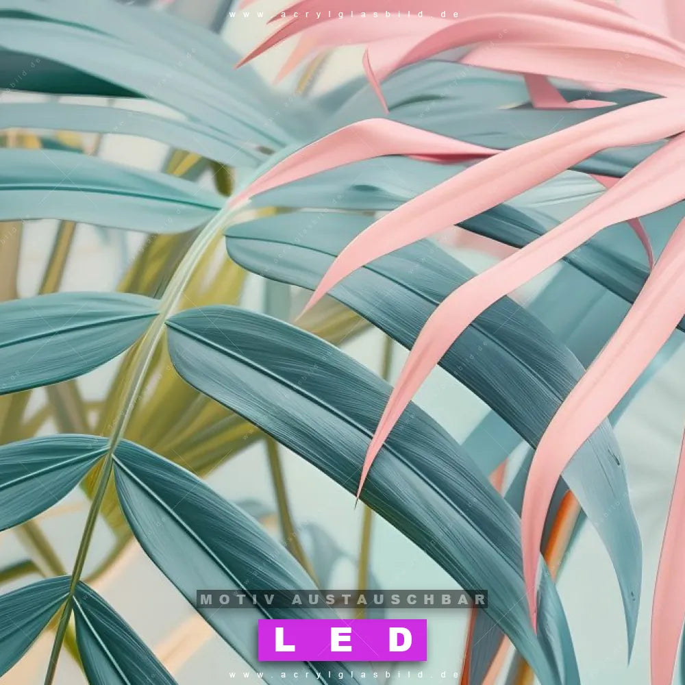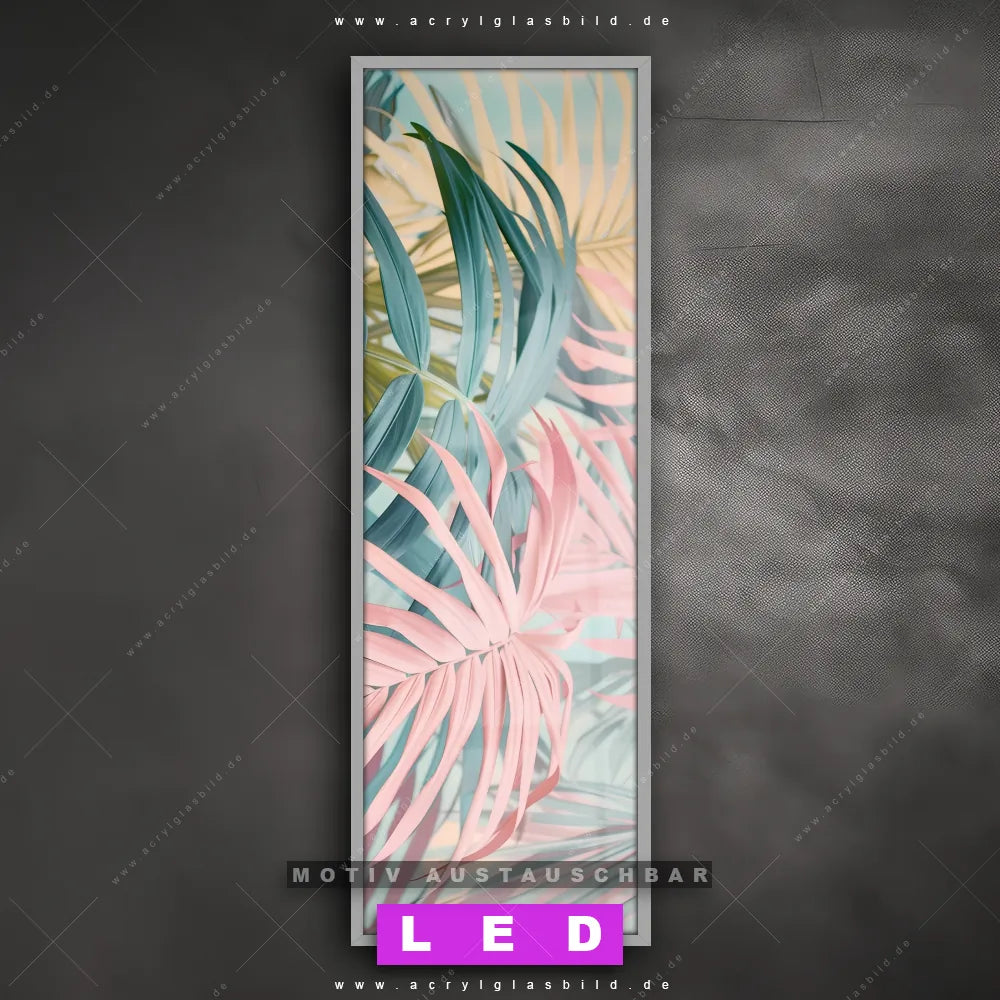 LED Acrylglasbild Canvalight® DIA | Tropische Blätter in Pastellfarben | Schmal