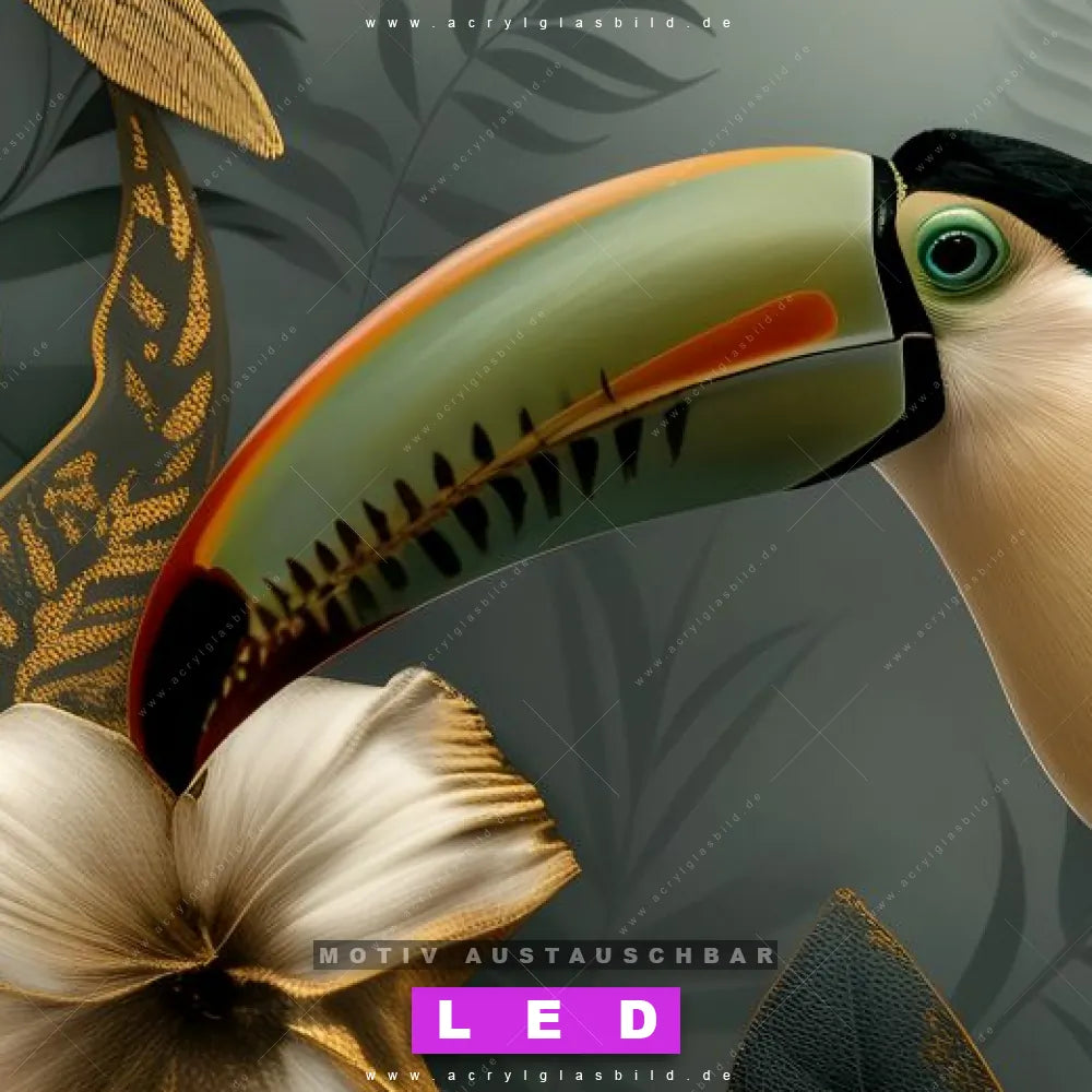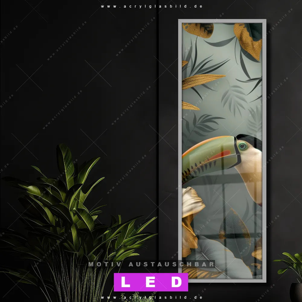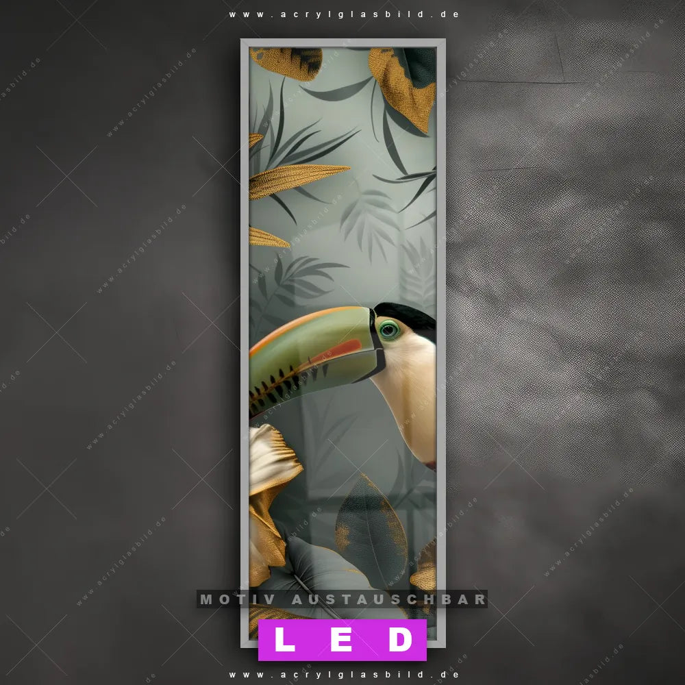 LED Acrylglasbild Canvalight® DIA | Tukan im goldenen Regenwald | Schmal