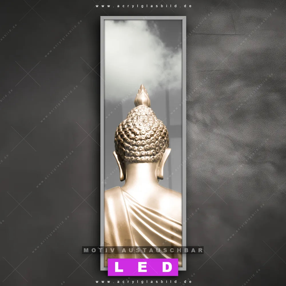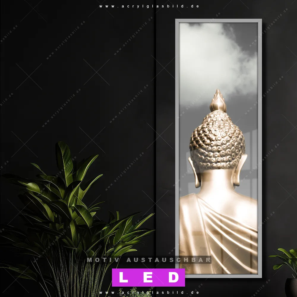 Bist du bereit, deine Wände mit einem dimmbaren LED Bild mit Fernbedienung und optionaler Farbtemperatursteuerung auf das nächste Level zu bringen? Unser Buddha - Feng Shui Canvalight® DIA LED Acrylglasbild ist genau das, was du brauchst! Das Wandbild mit LED Beleuchtung im Schmalen Format mit austauschbarer bedruckter Acrylglas-Scheibe Goldene Buddha Statue bringt Licht und Stil in dein Zuhause – und das in null Komma nichts!