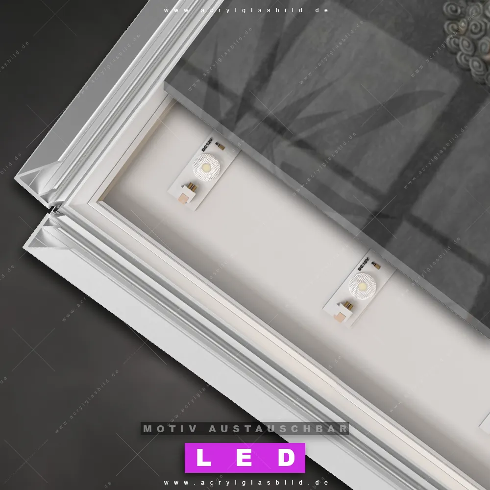 Bist du bereit, deine Wände mit einem dimmbaren LED Bild mit Fernbedienung und optionaler Farbtemperatursteuerung auf das nächste Level zu bringen? Unser Buddha - Feng Shui Canvalight® DIA LED Acrylglasbild ist genau das, was du brauchst! Das Wandbild mit LED Beleuchtung im Schmalen Format mit austauschbarer bedruckter Acrylglas-Scheibe Goldener Buddha & Bambus bringt Licht und Stil in dein Zuhause – und das in null Komma nichts!