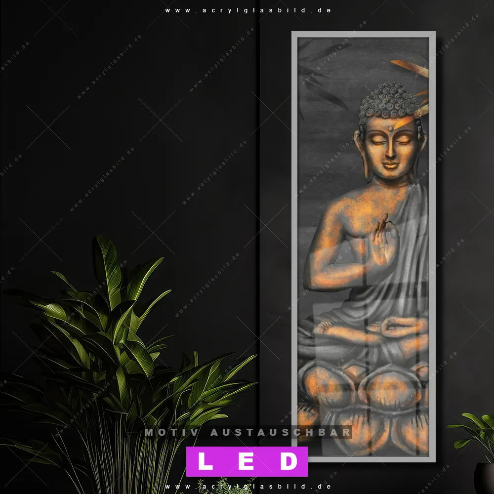 LED Acrylglasbild Canvalight® DIA | Goldener Buddha & Bambus | Schmal