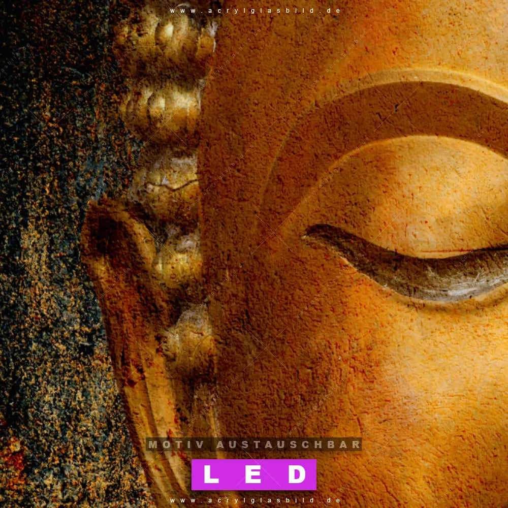 LED Acrylglasbild Canvalight® DIA | Lächelnder Buddha in Gold | Schmal
