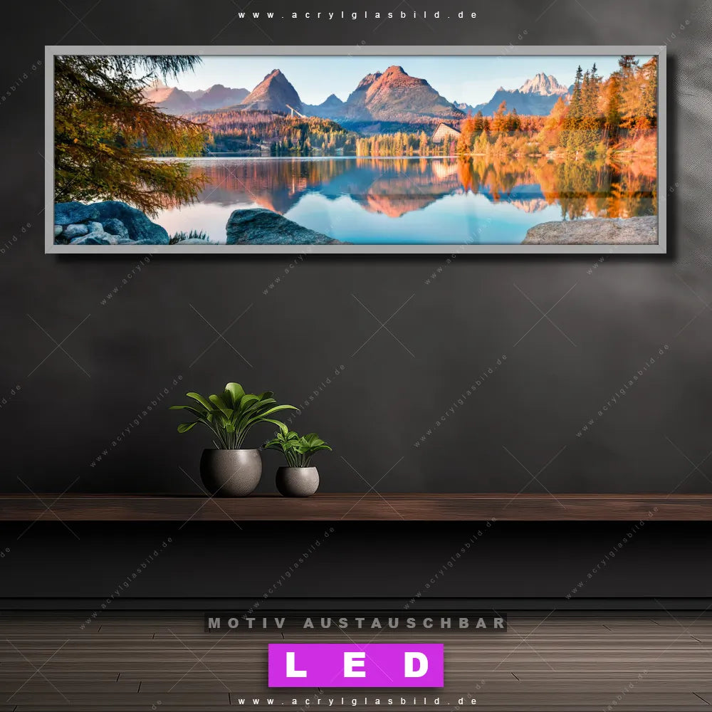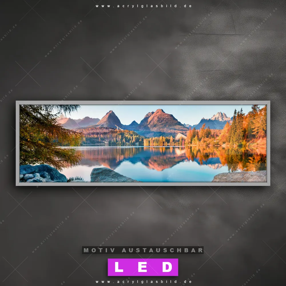 Wer will schon dunkle, triste Wände? Mit unserem LED Acrylglasbild Canvalight® DIA Letztes Sonnenlicht der Berghügel und seiner fantastischen LED-Ausleuchtung werden deine Wände in Flur - Eingangsbereich, Büro - Kanzlei, Arzt - Praxis, Wohnzimmer - Schlafzimmer zu echten Hinguckern. Wenn du auf der Suche nach einem beleuchteten Wandbild aus Acrylglas mit Wasserspiegelung, Bergsee, Gebirge, Berge, Slowakei, Bäume, Steine, See, Wasser, Natur, Reisen, Urlaub bist, dann solltest du unser LED Leuchhtbild Schönheit der Natur in der Slowakei mit den beeindruckenden Motiv-Farben Braun, Blau, Beige nicht verpassen. Gestaltet im angesagten Natürlich - Realistisch Stil, passt das LED Bild mit DIA-Klapprahmen und wechselbarer Acrylglas-Scheibe perfekt zu jedem Einrichtungsstil – selbst in deinem kleinen Dschungel aus Kreativität und Chaos!