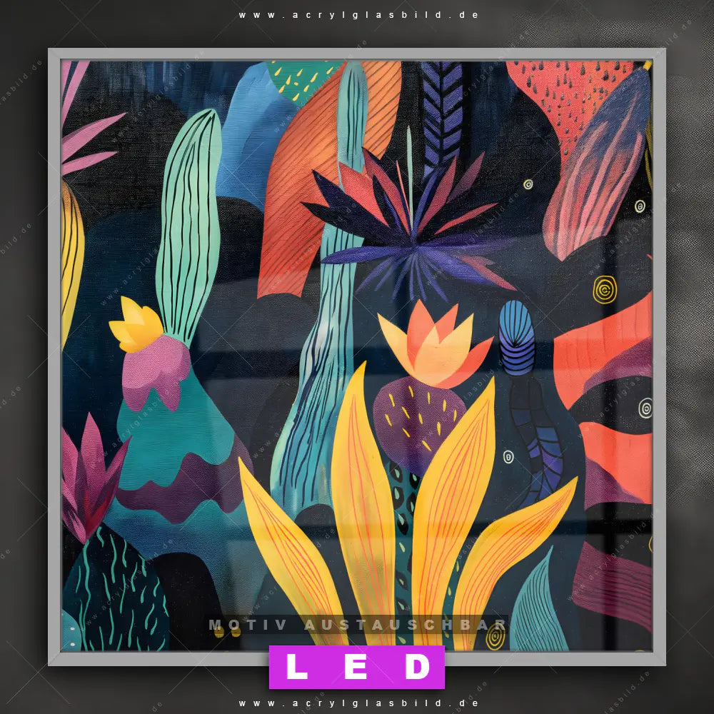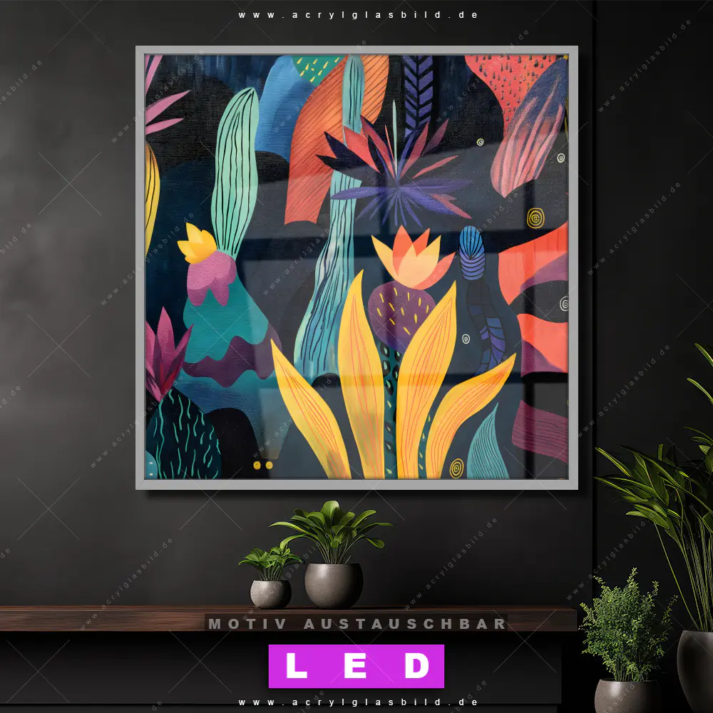 Begriffe wie Natur, Pflanzen, Kakteen, Blätter, Flora haben dich auf der Suche nach deinem neuen LED Wandbild aus Acrylglas inspiriert? Dann sollte das LED Acrylglasbild Farbenfrohe Pflanzen-Vielfalt den Weg zu dir finden.