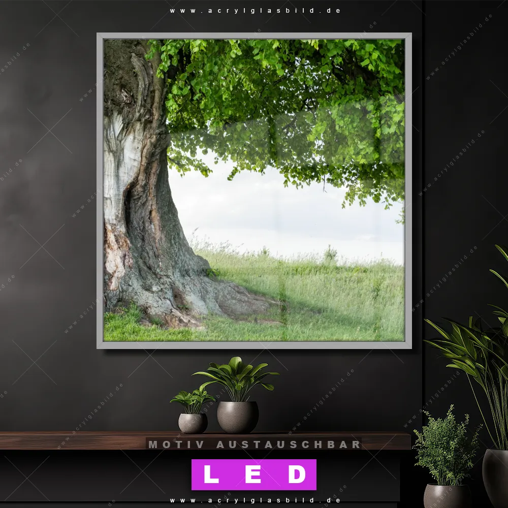 Also, worauf wartest du noch? Gib mit einem beleuchteten Wandbild mit wechselbarer Acrylglas-Scheibe deinen Wänden das gewisse Etwas und bestelle jetzt das LED Acrylglasbild Canvalight® DIA Alter imposanter Baum – dein Zuhause wird es dir danken und deine Freunde werden dank der wechselbaren Motive erblassen!