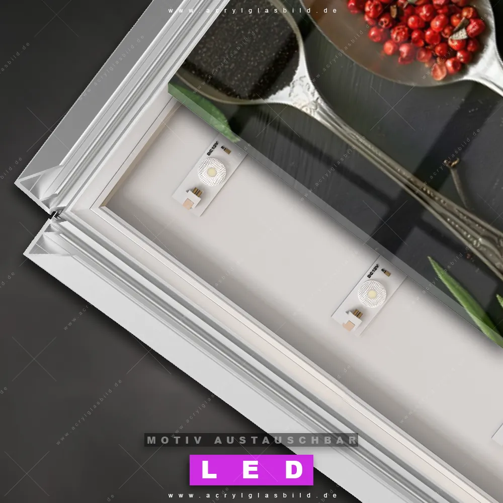 Also, worauf wartest du noch? Verwandle deine Wände mit einem LED Leuchtbild in wahre Kunstwerke und bestelle jetzt das Canvalight® DIA LED Acrylglasbild Würzige Zutaten. Deine Wände werden strahlen, und deine Freunde werden dank der wechselbaren Motive staunen!
