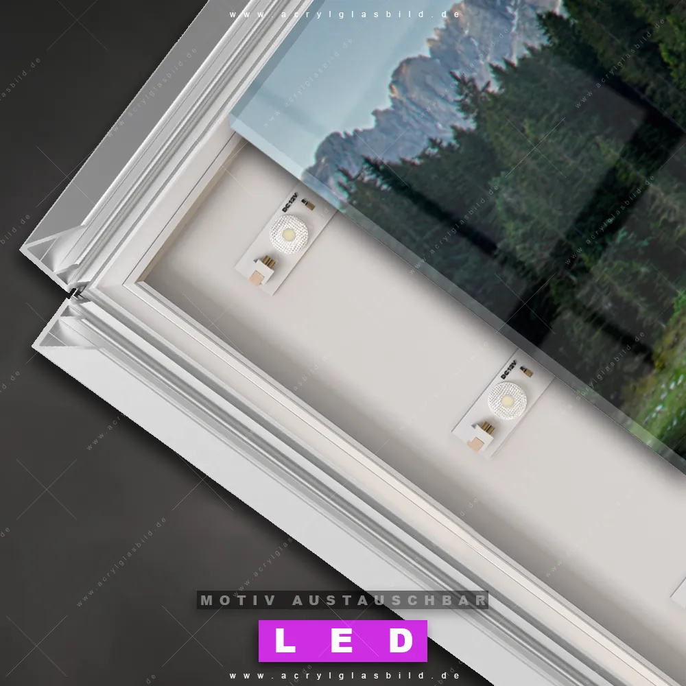 Also, worauf wartest du noch? Verwandle deine Wände mit einem LED Leuchtbild in wahre Kunstwerke und bestelle jetzt das Canvalight® DIA LED Acrylglasbild Bergwald am See. Deine Wände werden strahlen, und deine Freunde werden dank der wechselbaren Motive staunen!
