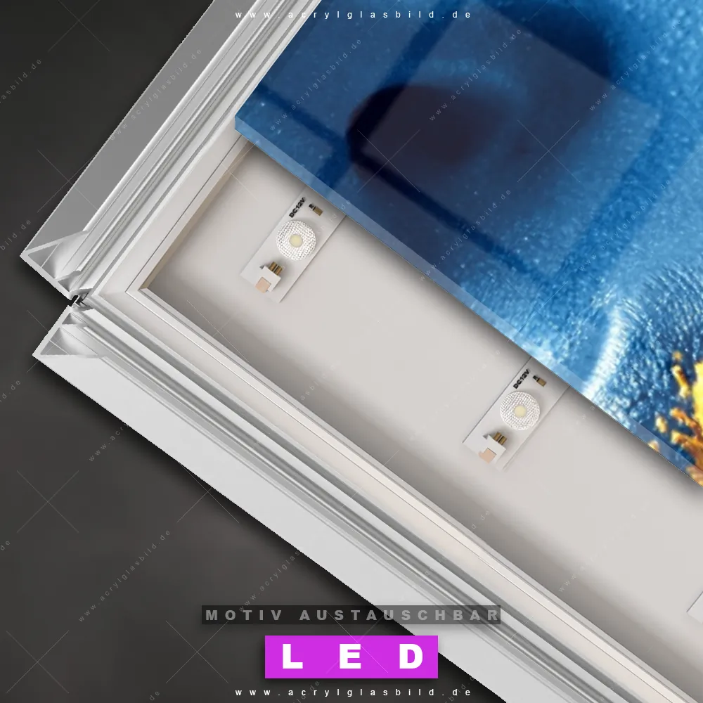 Bist du bereit, deine Wände mit einem dimmbaren LED Bild mit Fernbedienung und optionaler Farbtemperatursteuerung auf das nächste Level zu bringen? Unser Porträts - Menschen Canvalight® DIA LED Acrylglasbild ist genau das, was du brauchst! Das Wandbild mit LED Beleuchtung im Schmalen Format mit austauschbarer bedruckter Acrylglas-Scheibe Blaue Schönheit bringt Licht und Stil in dein Zuhause – und das in null Komma nichts!