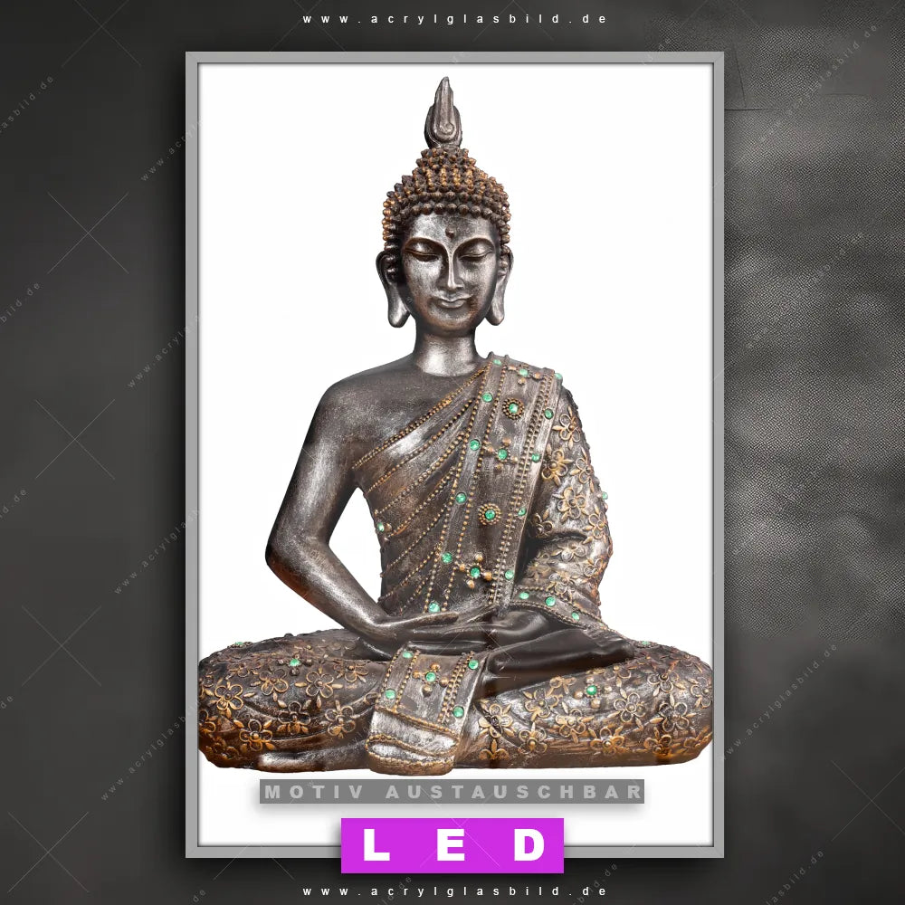 Du suchst nach einem Wandbild mit LED Beleuchtung als ultimativen Hingucker für deine Wände? Dann haben wir das perfekte dimmbare LED Bild mit Fernbedienung und optionaler Farbtemperatursteuerung für dich: unser abgefahrenes Buddha - Feng Shui Canvalight® DIA LED Acrylglasbild! Mit dem LED Leuchtbild aus Acrylglas Buddha in Lotus Pose No. 2 im Hochformat mit austauschbarer bedruckter Acrylglas-Scheibe bringst du nicht nur Licht, sondern auch ordentlich Stil in deine Bude.