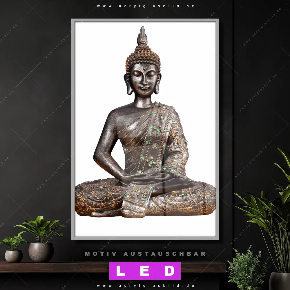 LED Acrylglasbild Canvalight® DIA | Buddha in Lotus Pose No. 2 | Hochformat