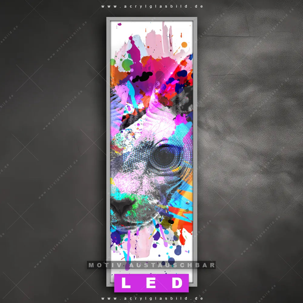 LED Acrylglasbild Canvalight® DIA | Bunte Sphynx Weiß | Schmal