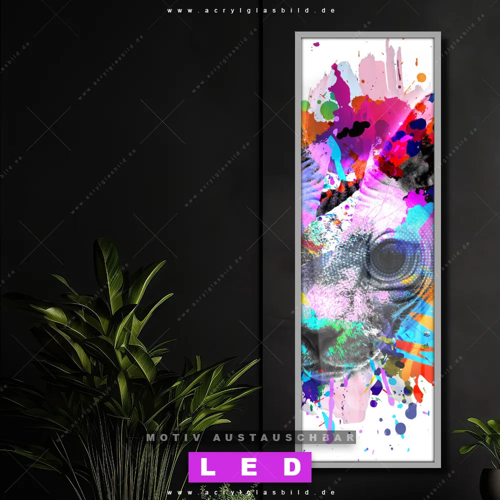Bist du bereit, deine Wände mit einem dimmbaren LED Bild mit Fernbedienung und optionaler Farbtemperatursteuerung auf das nächste Level zu bringen? Unser Tierwelt Canvalight® DIA LED Acrylglasbild ist genau das, was du brauchst! Das Wandbild mit LED Beleuchtung im Schmalen Format mit austauschbarer bedruckter Acrylglas-Scheibe Bunte Sphynx Weiß bringt Licht und Stil in dein Zuhause – und das in null Komma nichts!