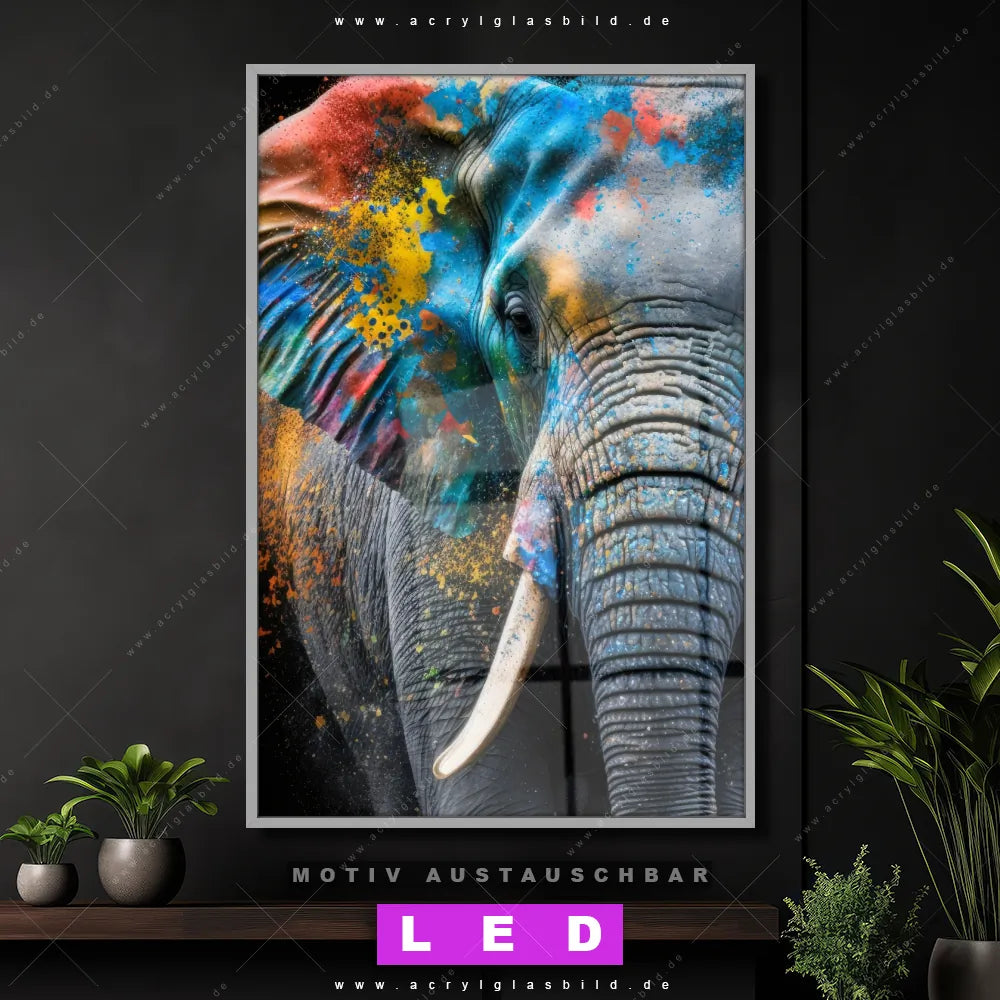 Du suchst nach einem Wandbild mit LED Beleuchtung als ultimativen Hingucker für deine Wände? Dann haben wir das perfekte dimmbare LED Bild mit Fernbedienung und optionaler Farbtemperatursteuerung für dich: unser abgefahrenes Tierwelt Canvalight® DIA LED Acrylglasbild! Mit dem LED Leuchtbild aus Acrylglas Bunter Elefant im Hochformat mit austauschbarer bedruckter Acrylglas-Scheibe bringst du nicht nur Licht, sondern auch ordentlich Stil in deine Bude.