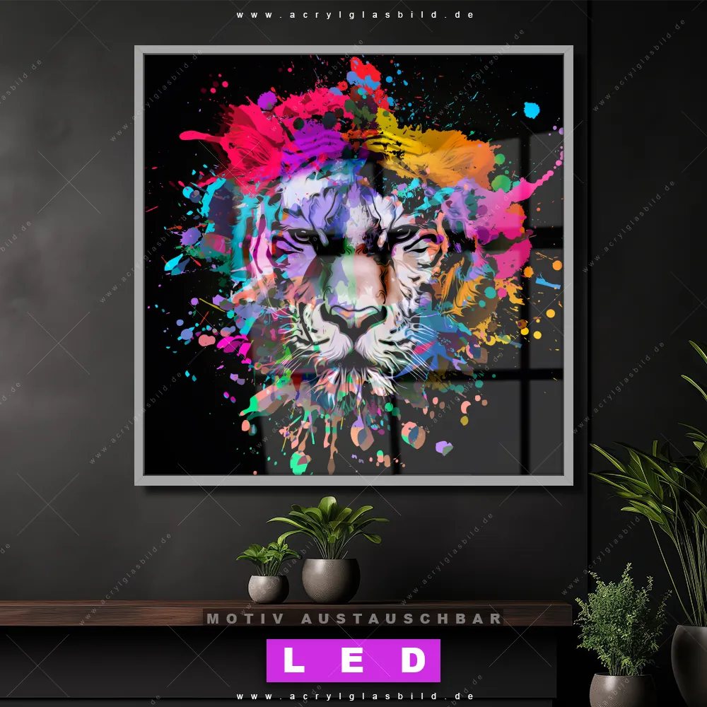 Also, worauf wartest du noch? Gib mit einem beleuchteten Wandbild mit wechselbarer Acrylglas-Scheibe deinen Wänden das gewisse Etwas und bestelle jetzt das LED Acrylglasbild Canvalight® DIA Tigerkopf bunt – dein Zuhause wird es dir danken und deine Freunde werden dank der wechselbaren Motive erblassen!