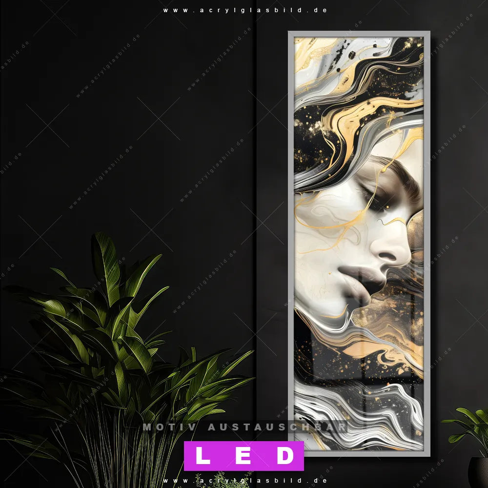 LED Acrylglasbild Canvalight® DIA | Elegantes gold-schwarzes Porträt | Schmal