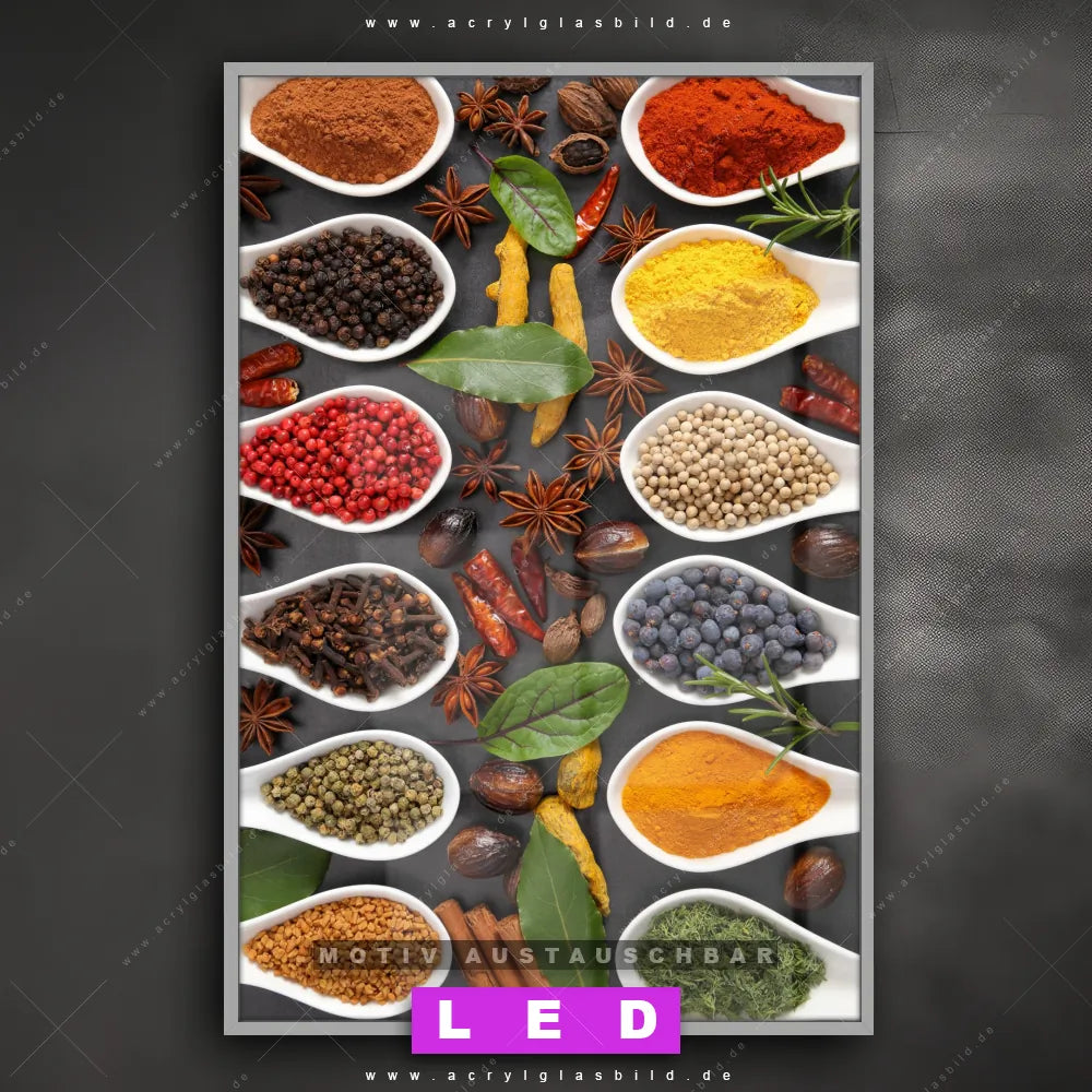 Wer braucht schon langweilige Wände, wenn man sie mit unserem LED Acrylglasbild Canvalight® DIA Löffel mit bunten Gewürzen aufpeppen kann? Dank der genialen LED-Ausleuchtung wirst du in Bar - Gastronomie, Küche - Esszimmer nie wieder über deine eigenen Füße stolpern. Wenn du nach einem beleuchteten Wandbild aus Acrylglas mit Gewürze, Kräuter, Löffel, Besteck, Lebensmittel, Geschmack, Indien suchst, dann ist unser LED Acrylglasbild Farbenfrohe Gewürze & Kräuter in den hammermäßigen Motiv-Farben Bunt, Weiss, Blau, Braun, Beige, Gelb , Grün, Lila, Ocker, Orange, Rot, Rosa genau das richtige LED Bild für dich. Im coolen Natürlich - Realistisch Stil gestaltet, passt das LED Leuchtbild mit DIA-Klapprahmen und glänzender Front aus Acrylglas perfekt zu jedem Einrichtungsstil – sogar zu deinem chaotischen Kreativlabor!