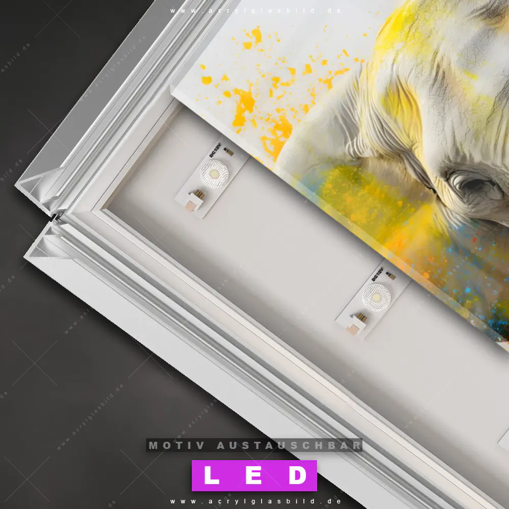 Du suchst nach einem Wandbild mit LED Beleuchtung als ultimativen Hingucker für deine Wände? Dann haben wir das perfekte dimmbare LED Bild mit Fernbedienung und optionaler Farbtemperatursteuerung für dich: unser abgefahrenes Tierwelt Canvalight® DIA LED Acrylglasbild! Mit dem LED Leuchtbild aus Acrylglas Farbenexplosion mit Elefant im Hochformat mit austauschbarer bedruckter Acrylglas-Scheibe bringst du nicht nur Licht, sondern auch ordentlich Stil in deine Bude.