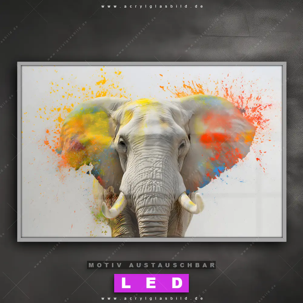 LED Acrylglasbild Canvalight® DIA | Farbenexplosion mit Elefant | Querformat