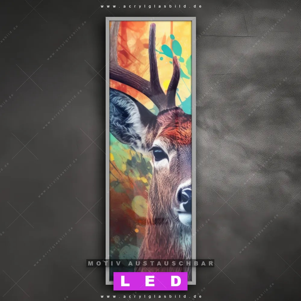 LED Acrylglasbild Canvalight® DIA | Farbenfrohes Hirschporträt | Schmal