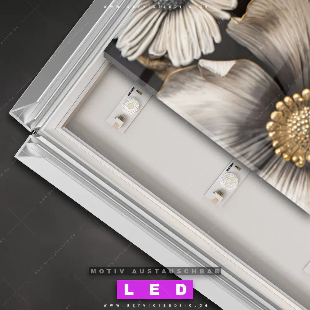 Deine Wände könnten dringend ein dimmbares LED Bild mit Fernbedienung und optionaler Farbtemperatursteuerung gebrauchen? Dann haben wir das perfekte Wandbild mit LED Beleuchtung für dich: unser mega-cooles Porträts - Menschen, Blumen - Botanik Canvalight® DIA LED Acrylglasbild! Mit unserem angesagten Leuchtbild aus Acrylglas im Panorama-Format und der austauschbaren bedruckten Acrylglas-Scheibe Floraler Totenschädel bringst du nicht nur Licht, sondern auch jede Menge Flair in deine Räume.