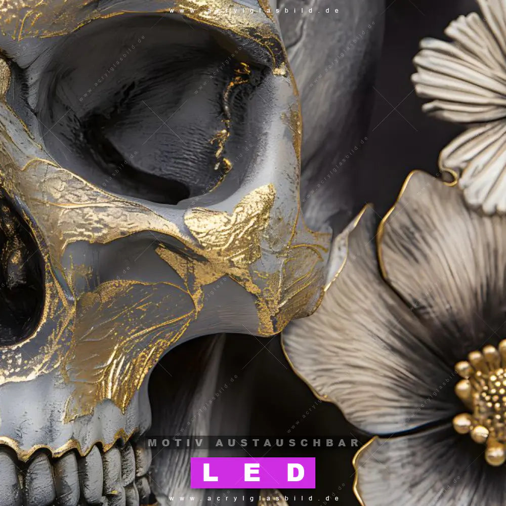 Also, worauf wartest du noch? Verwandle deine Wände mit einem LED Leuchtbild in wahre Kunstwerke und bestelle jetzt das Canvalight® DIA LED Acrylglasbild Skelettkopf - Blumen und Tod. Deine Wände werden strahlen, und deine Freunde werden dank der wechselbaren Motive staunen!