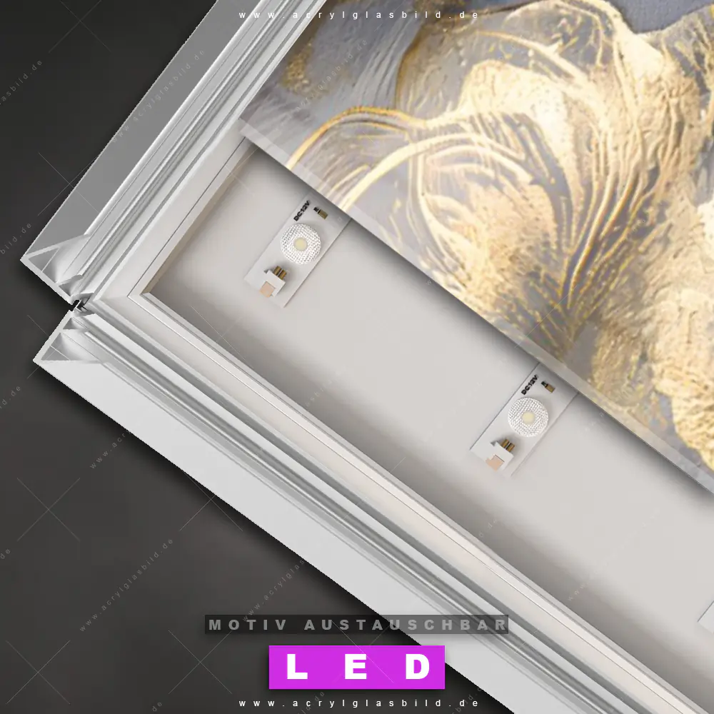 Vergiss dunkle Ecken und langweilige Wände in Flur - Eingangsbereich, Wohnzimmer - Schlafzimmer, Bar - Gastronomie! Mit unserem LED Acrylglasbild Canvalight® DIA Totenkopf - Vergängliche Schönheit wirst du nie wieder im Dunkeln tappen. Suchst du nach einem beleuchteten Wandbild mit Schädel, Totenkopf, Skelett, Skull, Knochen, Blumen, Blüten, Blätter, Pflanzen, Kopf? Dann ist unser Leuchtbild Schädelkunstwerk mit Blüten mit den strahlenden Motiv-Farben Gold, Schwarz, Weiss, Grau genau das richtige LED Bild für dich. Egal, ob dein Stil minimalistisch oder exotisch ist, dieses LED Leuchtbild im Floral, Modern Art Stil mit DIA-Klapprahmen und glänzender Front aus Acrylglas passt perfekt zu jeder Einrichtung.
