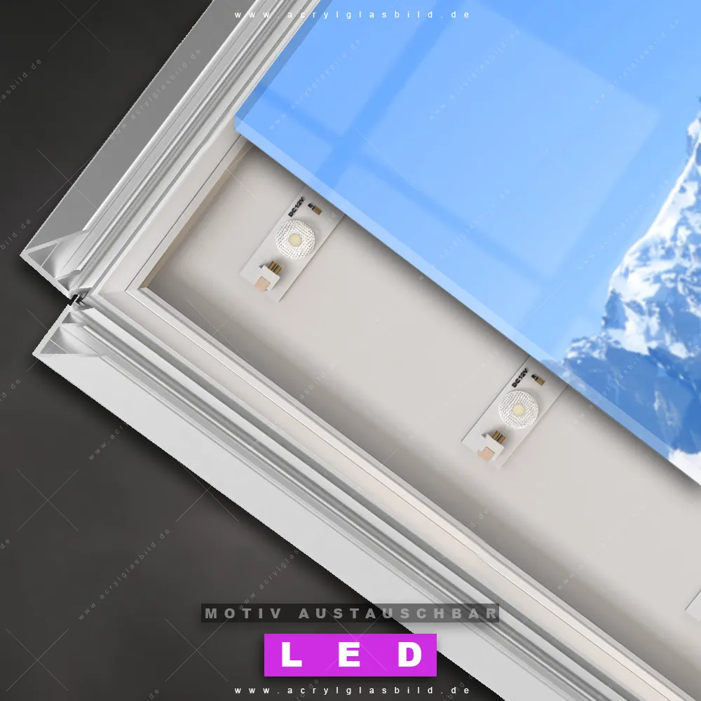 Bist du bereit, deine Wände mit einem dimmbaren LED Bild mit Fernbedienung und optionaler Farbtemperatursteuerung auf das nächste Level zu bringen? Unser Landschaften Canvalight® DIA LED Acrylglasbild ist genau das, was du brauchst! Das Wandbild mit LED Beleuchtung im Schmalen Format mit austauschbarer bedruckter Acrylglas-Scheibe Französische Alpen bringt Licht und Stil in dein Zuhause – und das in null Komma nichts!