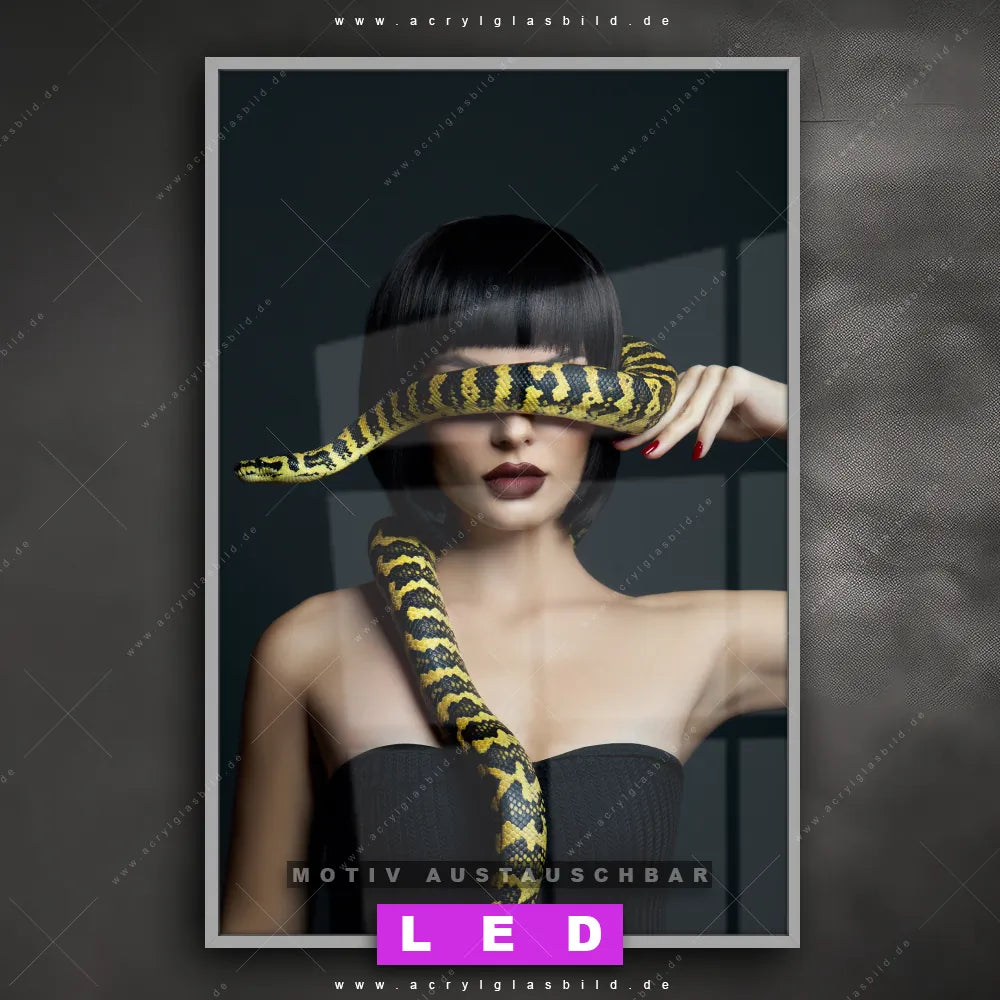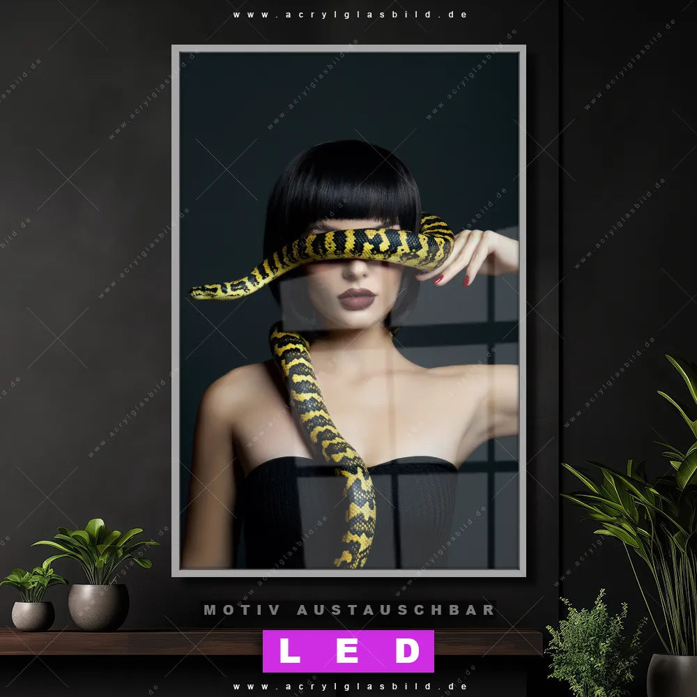 LED Acrylglasbild Canvalight® DIA | Frau mit gelber Schlange | Hochformat