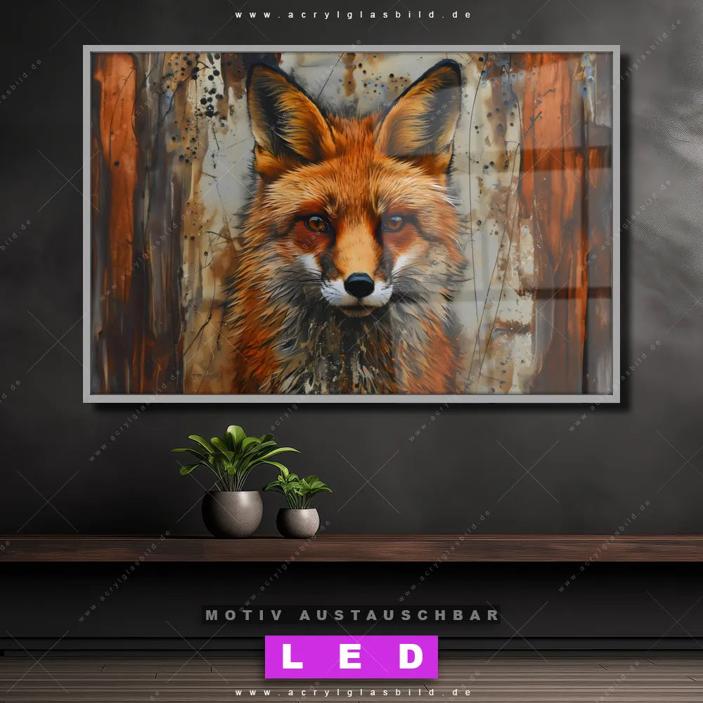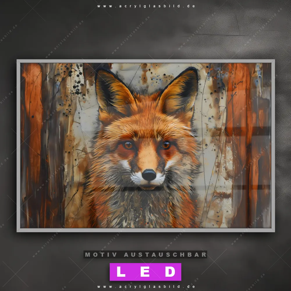Du bist auf der Suche nach einem dimmbaren Tierwelt LED Bild mit Fernbedienung und optionaler Farbtemperatursteuerung? Dann haben wir hier genau das richtige Wandbild mit LED Beleuchtung für dich: Unser Canvalight® DIA LED Acrylglasbild Fuchs - Grunge Stil im Querformat mit austauschbarer bedruckter Acrylglas-Scheibe. Dieses Leuchtbild bringt sofort Partybeleuchtung in deine Räume!