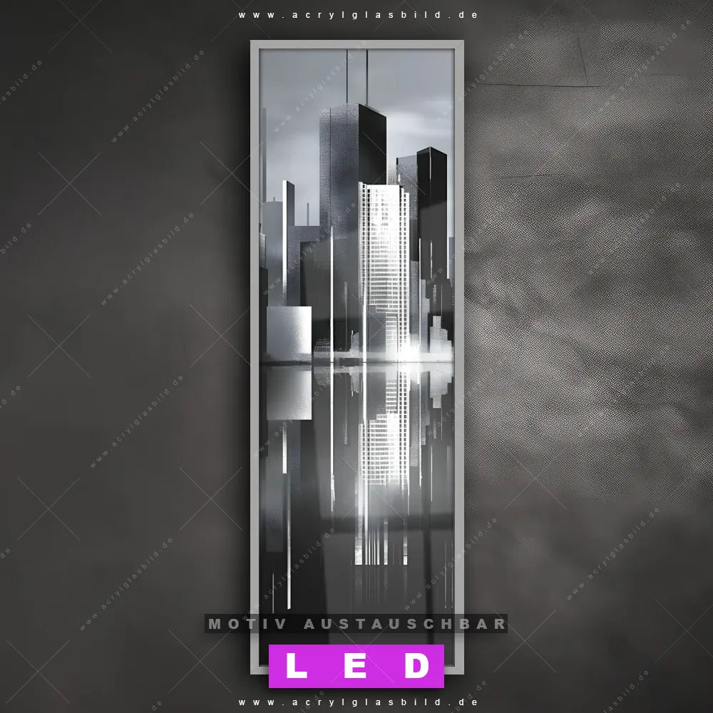 Bist du bereit, deine Wände mit einem dimmbaren LED Bild mit Fernbedienung und optionaler Farbtemperatursteuerung auf das nächste Level zu bringen? Unser Städte - Skylines Canvalight® DIA LED Acrylglasbild ist genau das, was du brauchst! Das Wandbild mit LED Beleuchtung im Schmalen Format mit austauschbarer bedruckter Acrylglas-Scheibe Futuristische Skyline bringt Licht und Stil in dein Zuhause – und das in null Komma nichts!