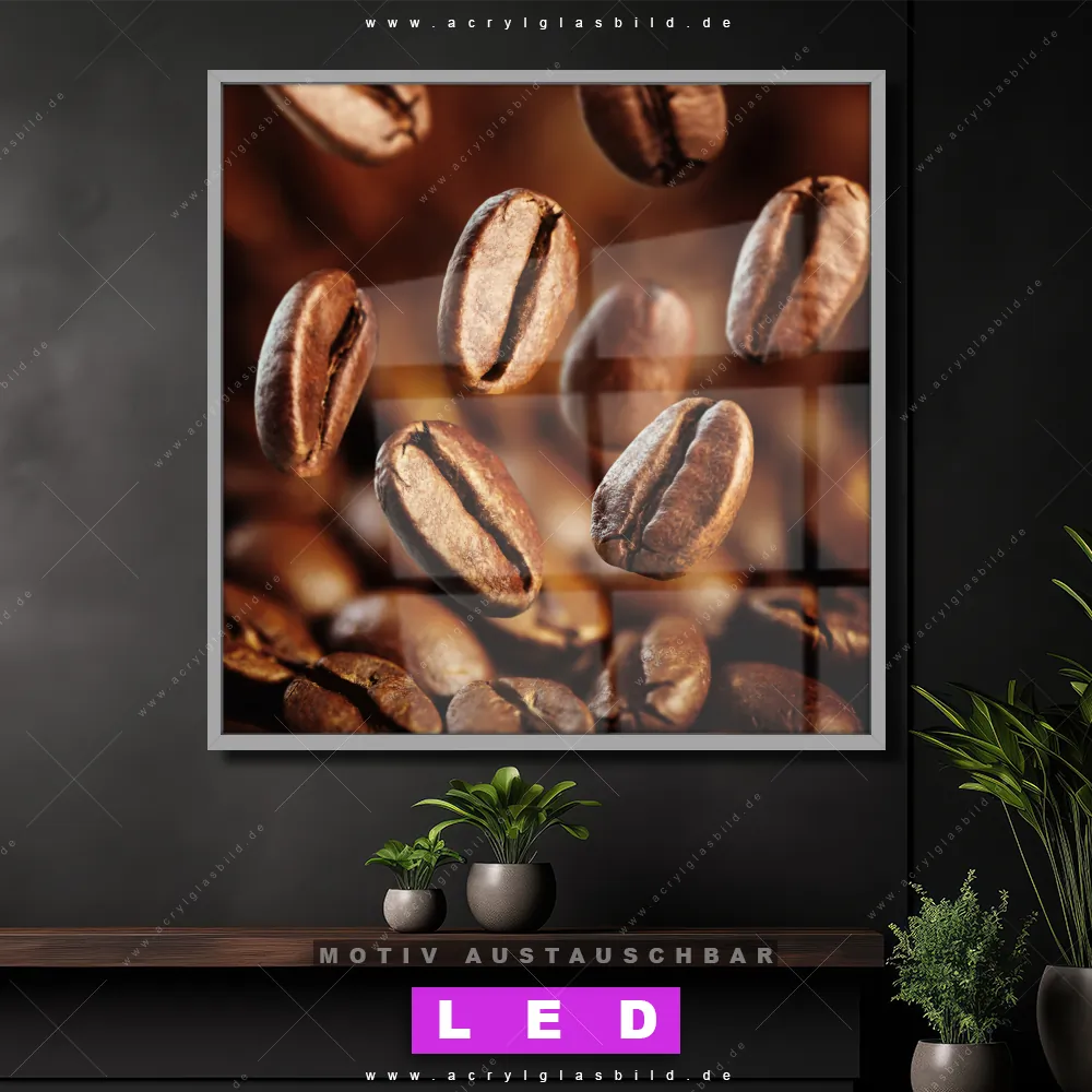 Bist du bereit, deine Wände mit einem dimmbaren LED Bild mit Fernbedienung und optionaler Farbtemperatursteuerung zum Leuchten zu bringen? Wir haben das ultimative Essen - Trinken LED Acrylglasbild Canvalight® DIA für dich! Unser LED Wandbild aus Acrylglas Geröstete Kaffeebohnen No.2 im Quadratischen Format mit austauschbarer bedruckter Acrylglas-Scheibe im DIA-Klapprahmen bringt sofort jede Menge Glanz in deine vier Wände.