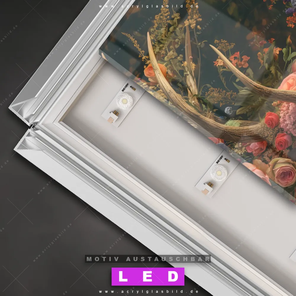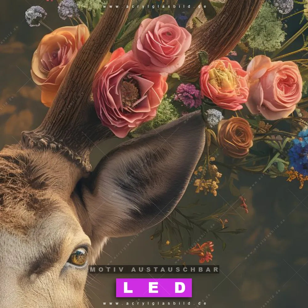LED Acrylglasbild Canvalight® DIA | Hirsch mit floralem Geweih | Hochformat