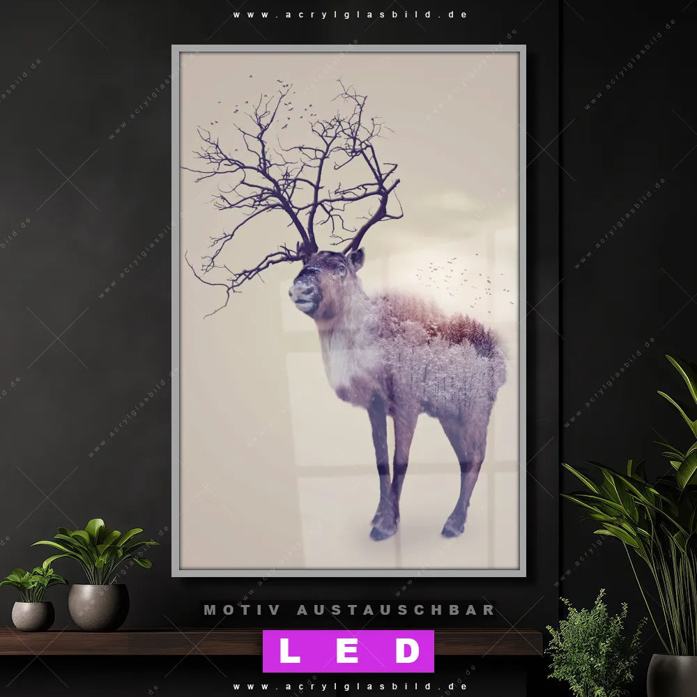 Wer braucht schon langweilige Wände, wenn man sie mit unserem LED Acrylglasbild Canvalight® DIA Waldhirsch aufpeppen kann? Dank der genialen LED-Ausleuchtung wirst du in Wohnzimmer - Schlafzimmer, Arzt - Praxis, Bar - Gastronomie, Büro - Kanzlei nie wieder über deine eigenen Füße stolpern. Wenn du nach einem beleuchteten Wandbild aus Acrylglas mit Hirsch, Deer, Wald, Doppelbelichtung, Natur, skandinavisch, Bäume, Rotwild, Reh suchst, dann ist unser LED Acrylglasbild Hirschwald in den hammermäßigen Motiv-Farben Beige, Braun genau das richtige LED Bild für dich. Im coolen Modern Art, Natürlich - Realistisch Stil gestaltet, passt das LED Leuchtbild mit DIA-Klapprahmen und glänzender Front aus Acrylglas perfekt zu jedem Einrichtungsstil – sogar zu deinem chaotischen Kreativlabor!