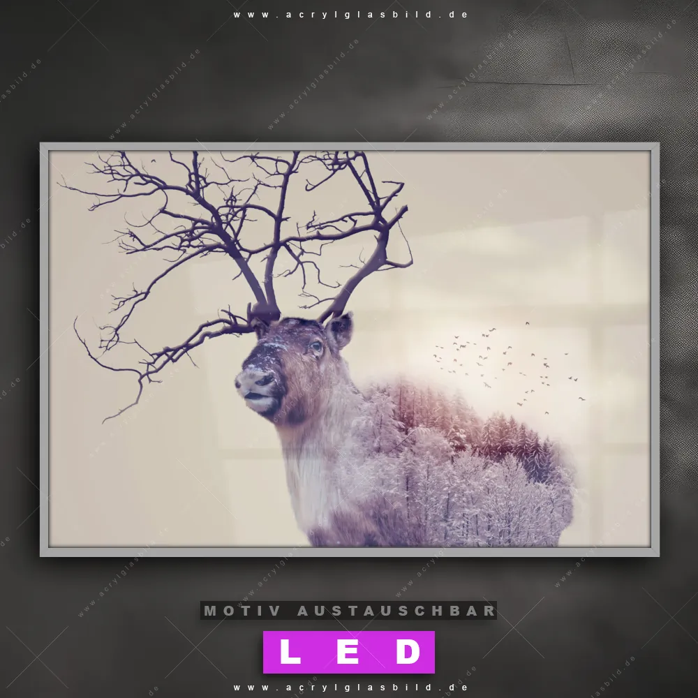 Du bist auf der Suche nach einem dimmbaren Tierwelt LED Bild mit Fernbedienung und optionaler Farbtemperatursteuerung? Dann haben wir hier genau das richtige Wandbild mit LED Beleuchtung für dich: Unser Canvalight® DIA LED Acrylglasbild Hirsch & Wald No.1 im Querformat mit austauschbarer bedruckter Acrylglas-Scheibe. Dieses Leuchtbild bringt sofort Partybeleuchtung in deine Räume!