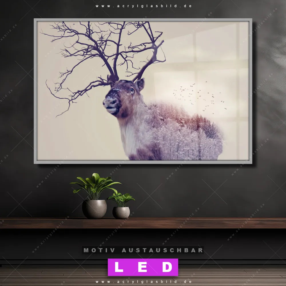 Mit unserem LED Acrylglasbild Canvalight® DIA Waldhirsch und seiner genialen LED-Ausleuchtung wirst du nie wieder im Dunkeln auf deinem Sofa herumtappen. Wenn du nach einem beleuchteten Wandbild aus Acrylglas mit Hirsch, Deer, Wald, Doppelbelichtung, Natur, skandinavisch, Bäume, Rotwild, Reh für Wohnzimmer - Schlafzimmer, Arzt - Praxis, Bar - Gastronomie, Büro - Kanzlei suchst, ist unser LED Leuchtbild Hirschwald in den beeindruckenden Motiv-Farben Beige, Braun genau das richtige beleuchtete Wandbild für dich. Gestaltet im Modern Art, Natürlich - Realistisch Stil, passt dieses LED Wandbild mit DIA-Klapprahmen und glänzender Front aus Acrylglas perfekt zu jedem Einrichtungsstil – sogar zu deinem chaotischen kreativen Durcheinander!