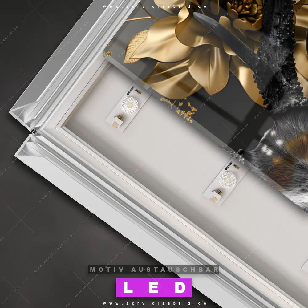 Na, worauf wartest du noch? Mach deine Wände zum Star der Show und bestelle jetzt das Canvalight® DIA LED Acrylglasbild Hirsch und goldene Blüten. Deine Wände werden es dir danken und deine Freunde werden dank der wechselbaren Motive vor Neid platzen!