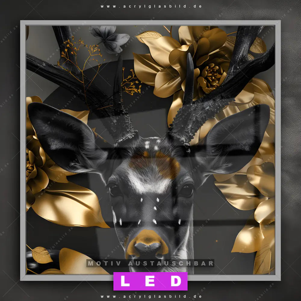 LED Acrylglasbild Canvalight® DIA | Junger Hirsch und Goldblumen | Quadrat