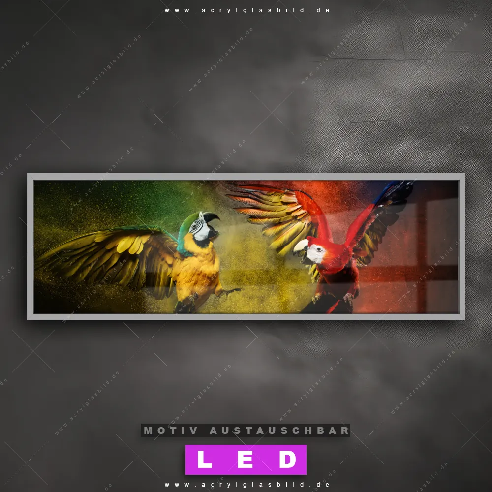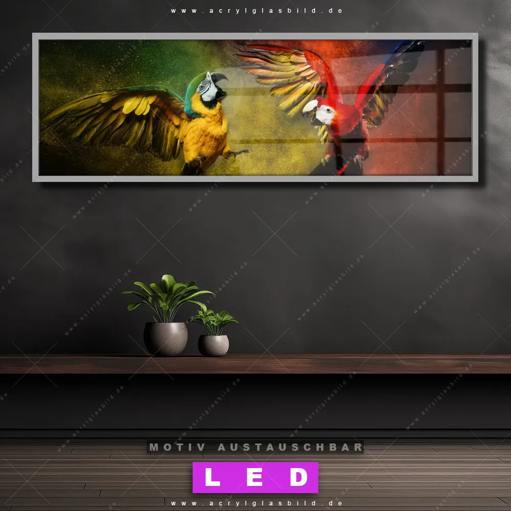 LED Acrylglasbild Canvalight® DIA | Kampf der Papageien | Panorama