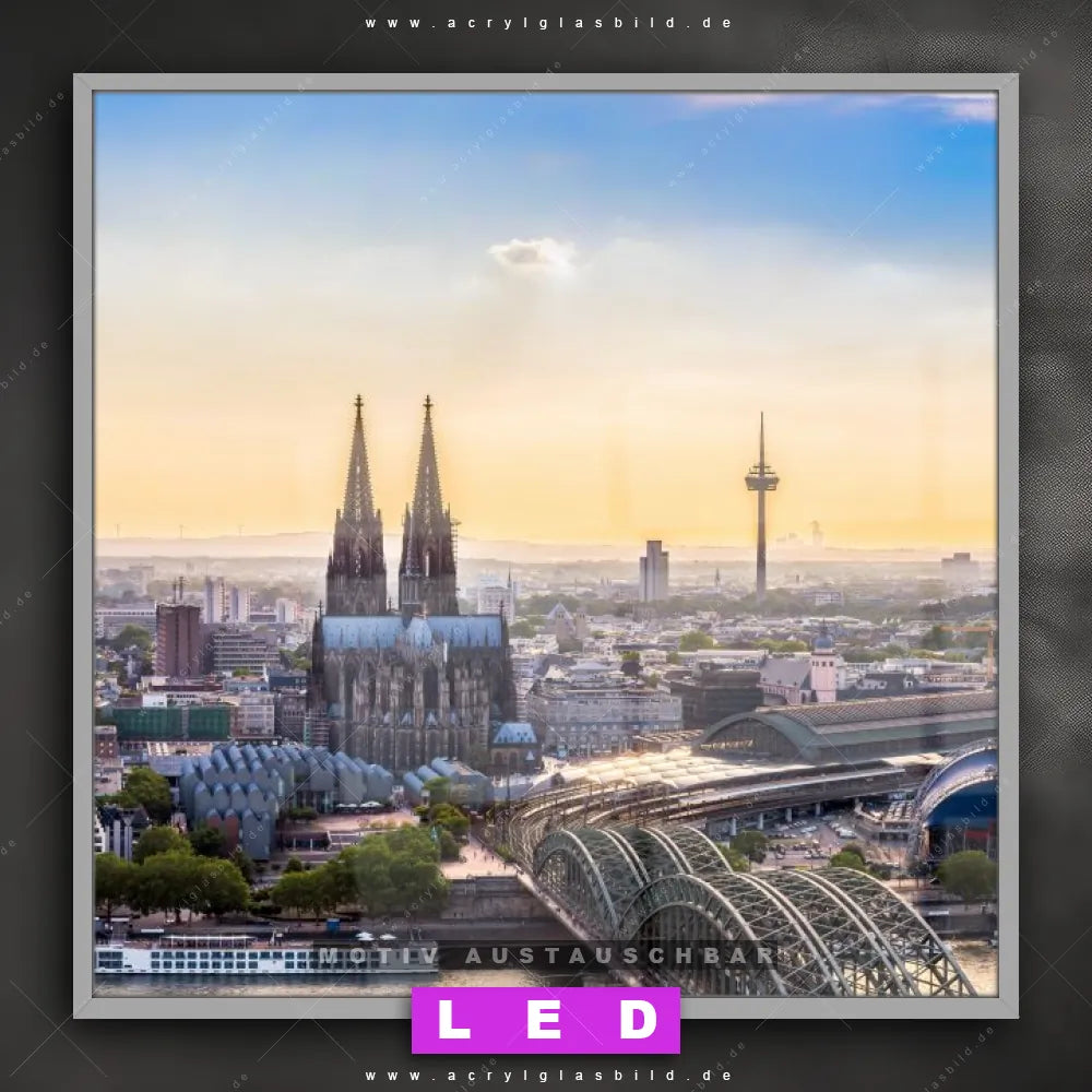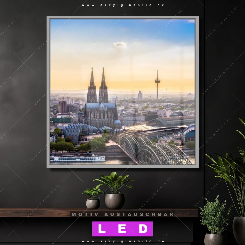 Bist du bereit, deine Wände mit einem dimmbaren LED Bild mit Fernbedienung und optionaler Farbtemperatursteuerung zum Leuchten zu bringen? Wir haben das ultimative Städte - Skylines LED Acrylglasbild Canvalight® DIA für dich! Unser LED Wandbild aus Acrylglas Kölner Skyline im Quadratischen Format mit austauschbarer bedruckter Acrylglas-Scheibe im DIA-Klapprahmen bringt sofort jede Menge Glanz in deine vier Wände.