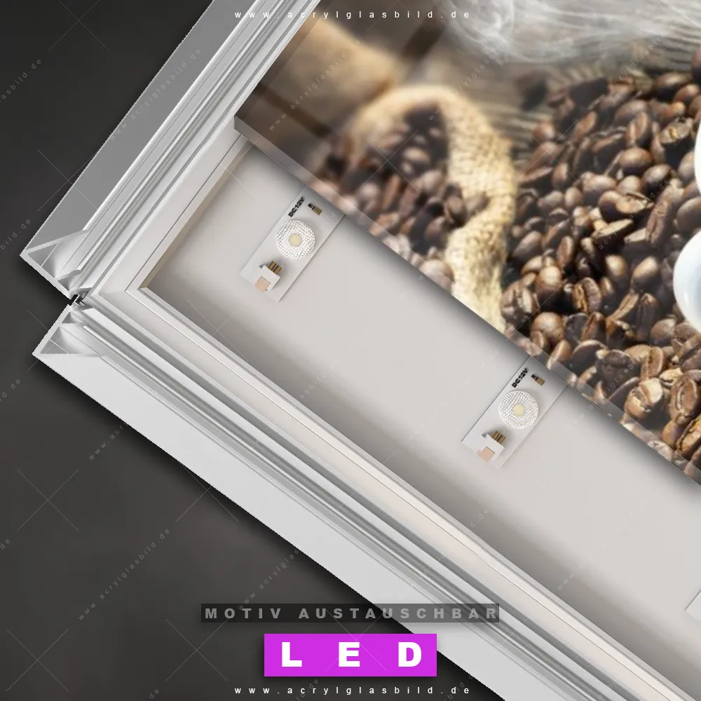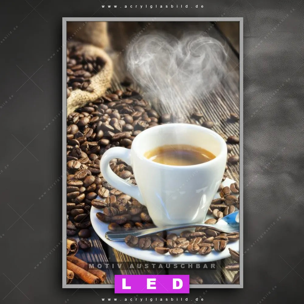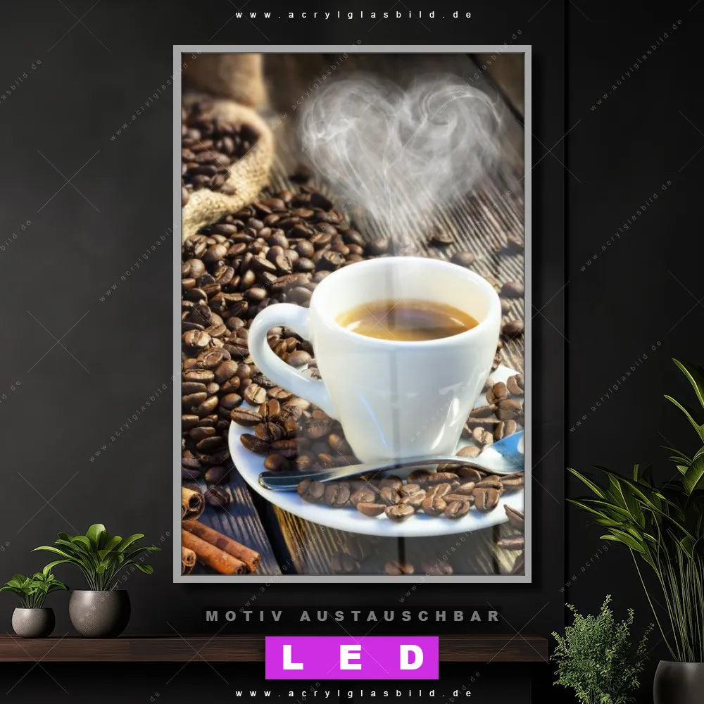 Du suchst nach einem Wandbild mit LED Beleuchtung als ultimativen Hingucker für deine Wände? Dann haben wir das perfekte dimmbare LED Bild mit Fernbedienung und optionaler Farbtemperatursteuerung für dich: unser abgefahrenes Essen - Trinken Canvalight® DIA LED Acrylglasbild! Mit dem LED Leuchtbild aus Acrylglas Köstlicher Kaffee im Hochformat mit austauschbarer bedruckter Acrylglas-Scheibe bringst du nicht nur Licht, sondern auch ordentlich Stil in deine Bude.