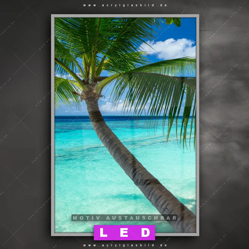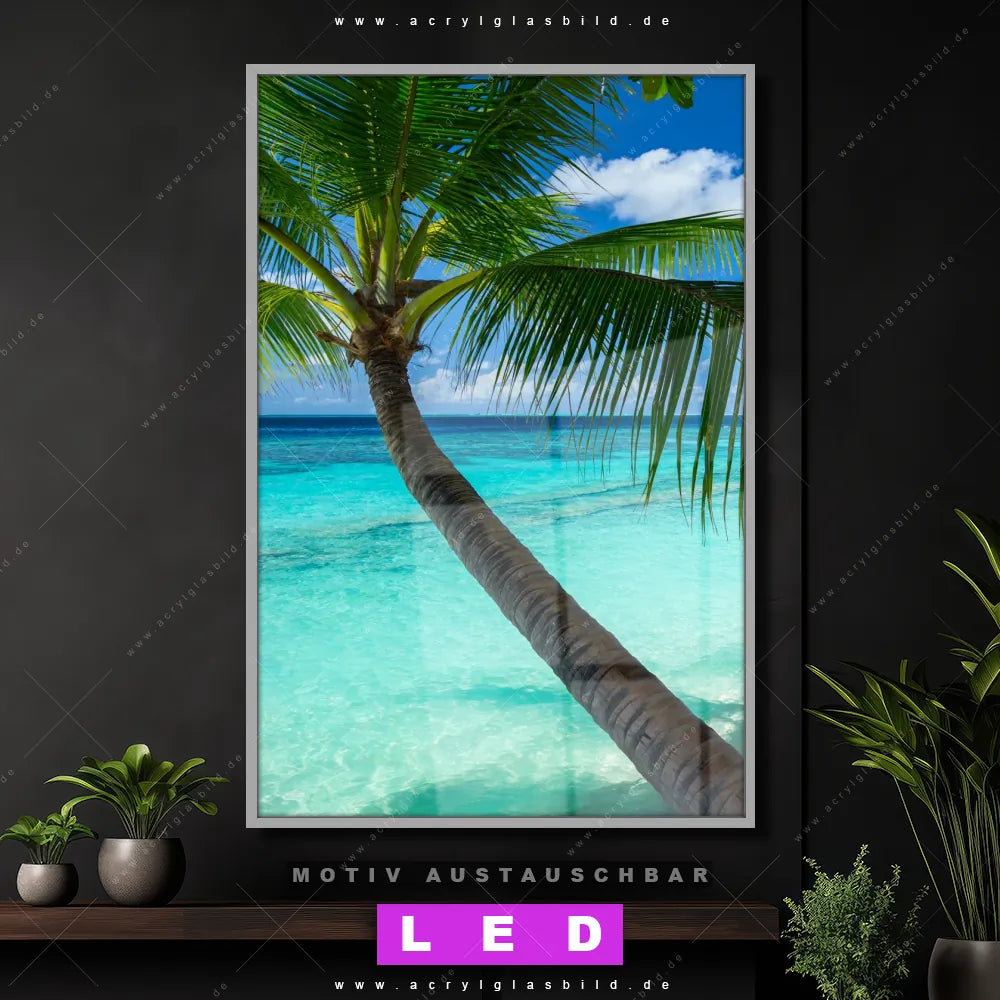 LED Acrylglasbild Canvalight® DIA | Kokospalme am Strand | Hochformat