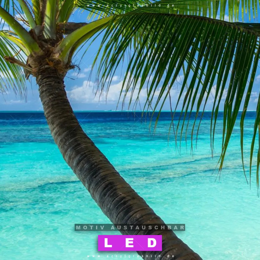 Du suchst nach einem Wandbild mit LED Beleuchtung als ultimativen Hingucker für deine Wände? Dann haben wir das perfekte dimmbare LED Bild mit Fernbedienung und optionaler Farbtemperatursteuerung für dich: unser abgefahrenes Landschaften, Strand - Meer Canvalight® DIA LED Acrylglasbild! Mit dem LED Leuchtbild aus Acrylglas Kokospalme am Strand im Hochformat mit austauschbarer bedruckter Acrylglas-Scheibe bringst du nicht nur Licht, sondern auch ordentlich Stil in deine Bude.