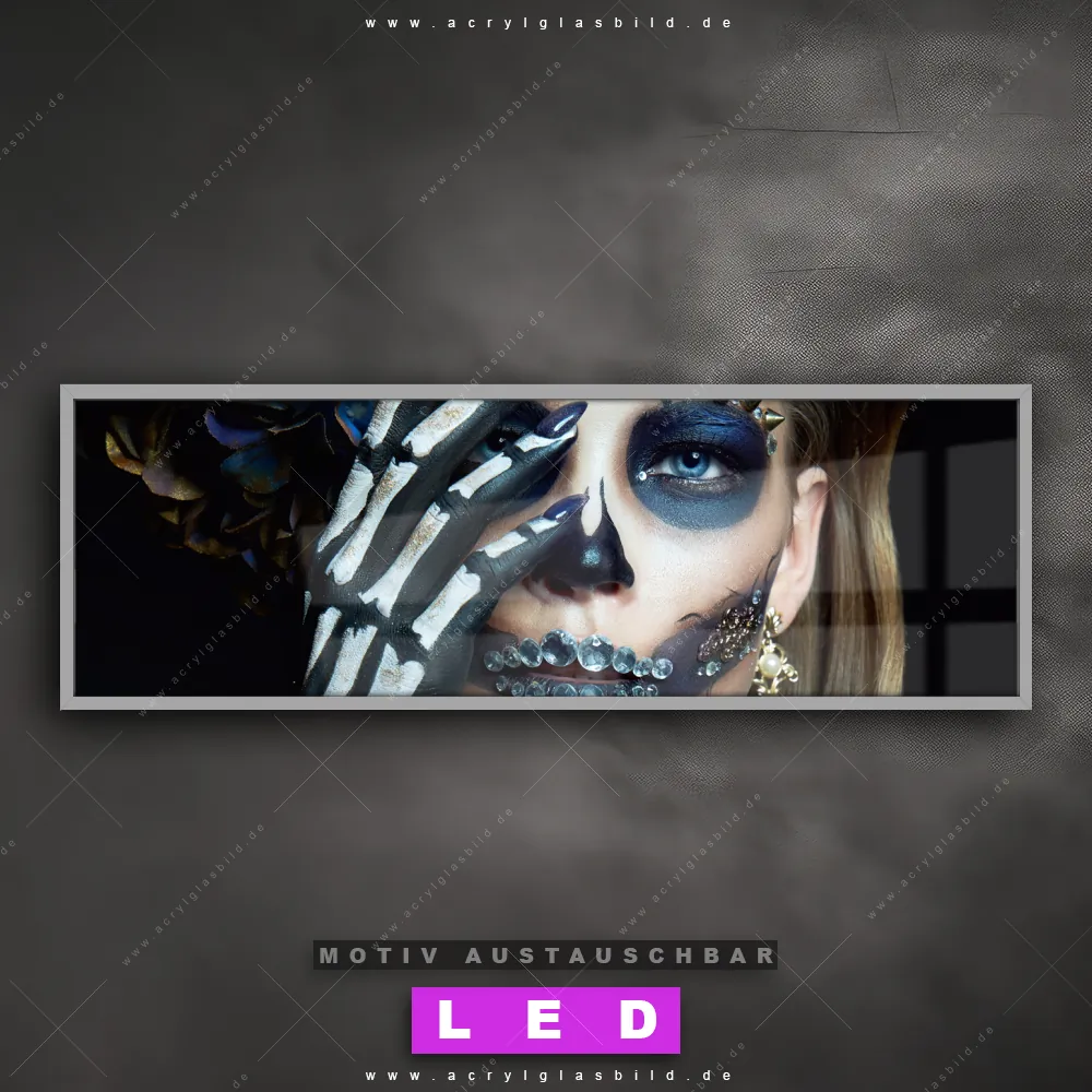 Also, worauf wartest du noch? Verwandle deine Wände mit einem LED Leuchtbild in wahre Kunstwerke und bestelle jetzt das Canvalight® DIA LED Acrylglasbild Frau mit Totenkopf und Knochen. Deine Wände werden strahlen, und deine Freunde werden dank der wechselbaren Motive staunen!