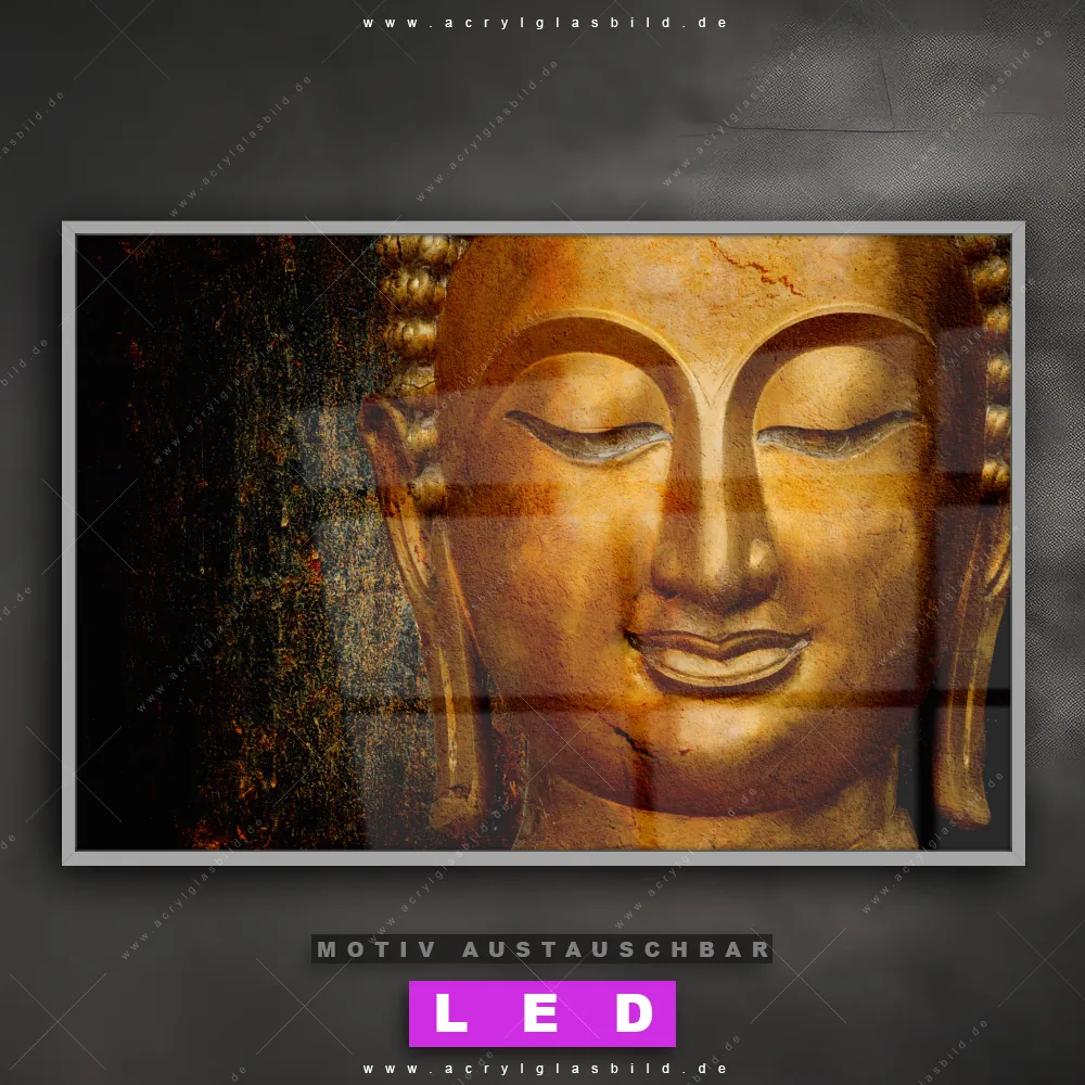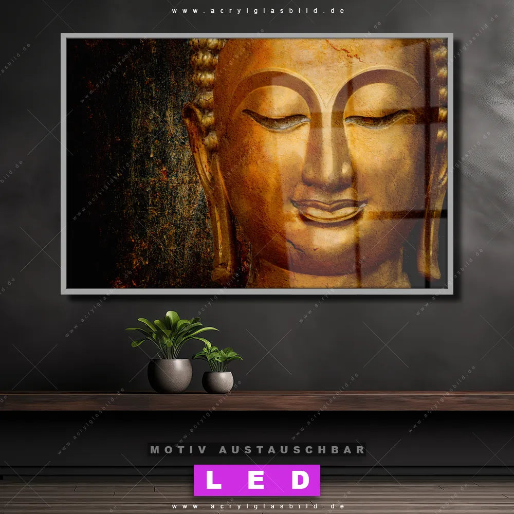 LED Acrylglasbild Canvalight® DIA | Lächelnder Buddha in Gold | Querformat