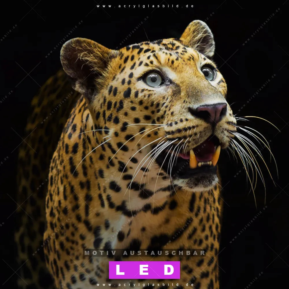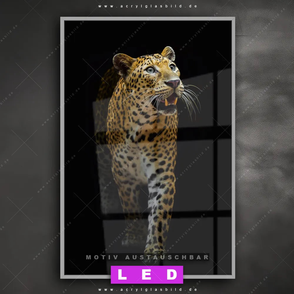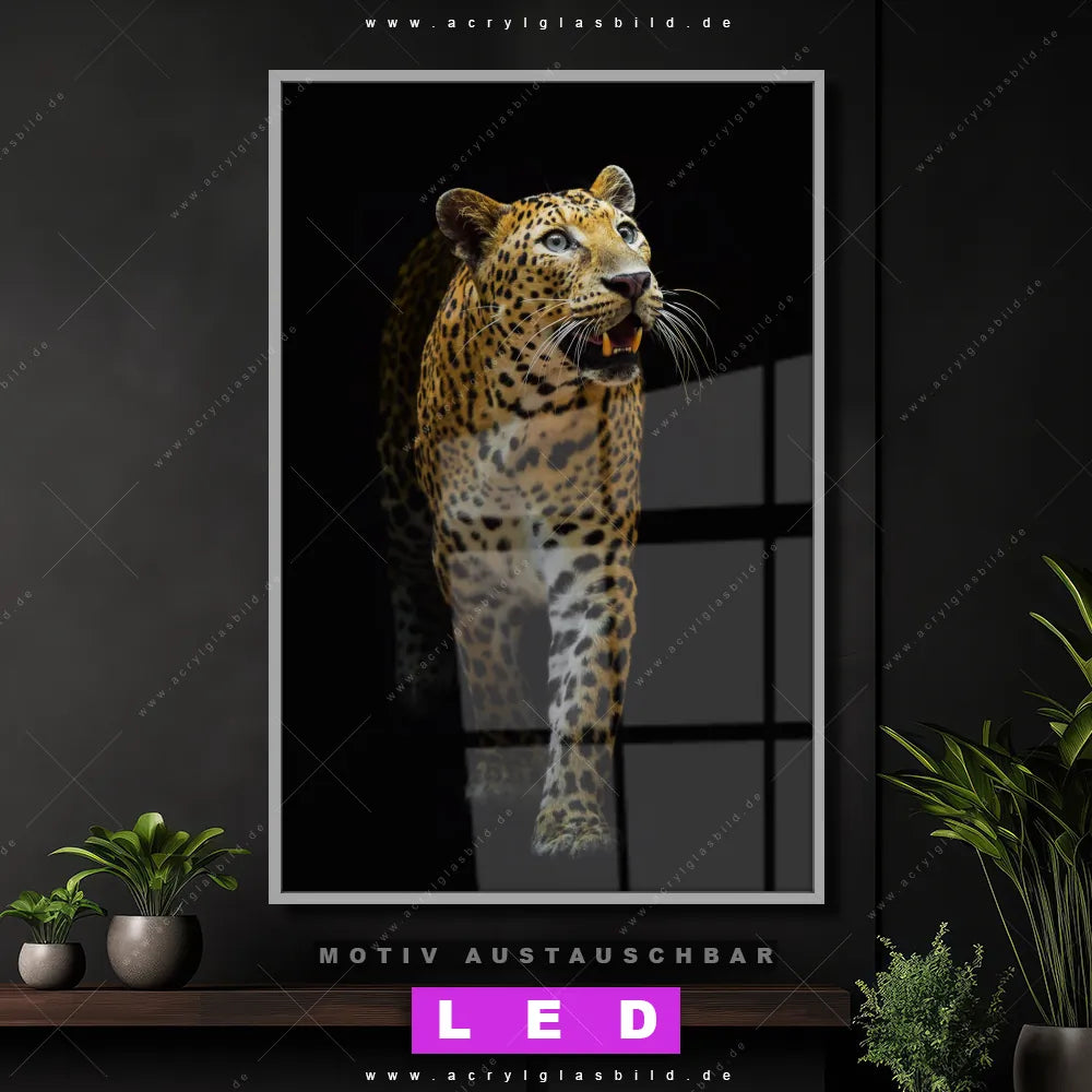 Du suchst nach einem Wandbild mit LED Beleuchtung als ultimativen Hingucker für deine Wände? Dann haben wir das perfekte dimmbare LED Bild mit Fernbedienung und optionaler Farbtemperatursteuerung für dich: unser abgefahrenes Tierwelt Canvalight® DIA LED Acrylglasbild! Mit dem LED Leuchtbild aus Acrylglas Leopard in der Dunkelheit im Hochformat mit austauschbarer bedruckter Acrylglas-Scheibe bringst du nicht nur Licht, sondern auch ordentlich Stil in deine Bude.