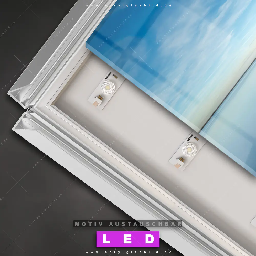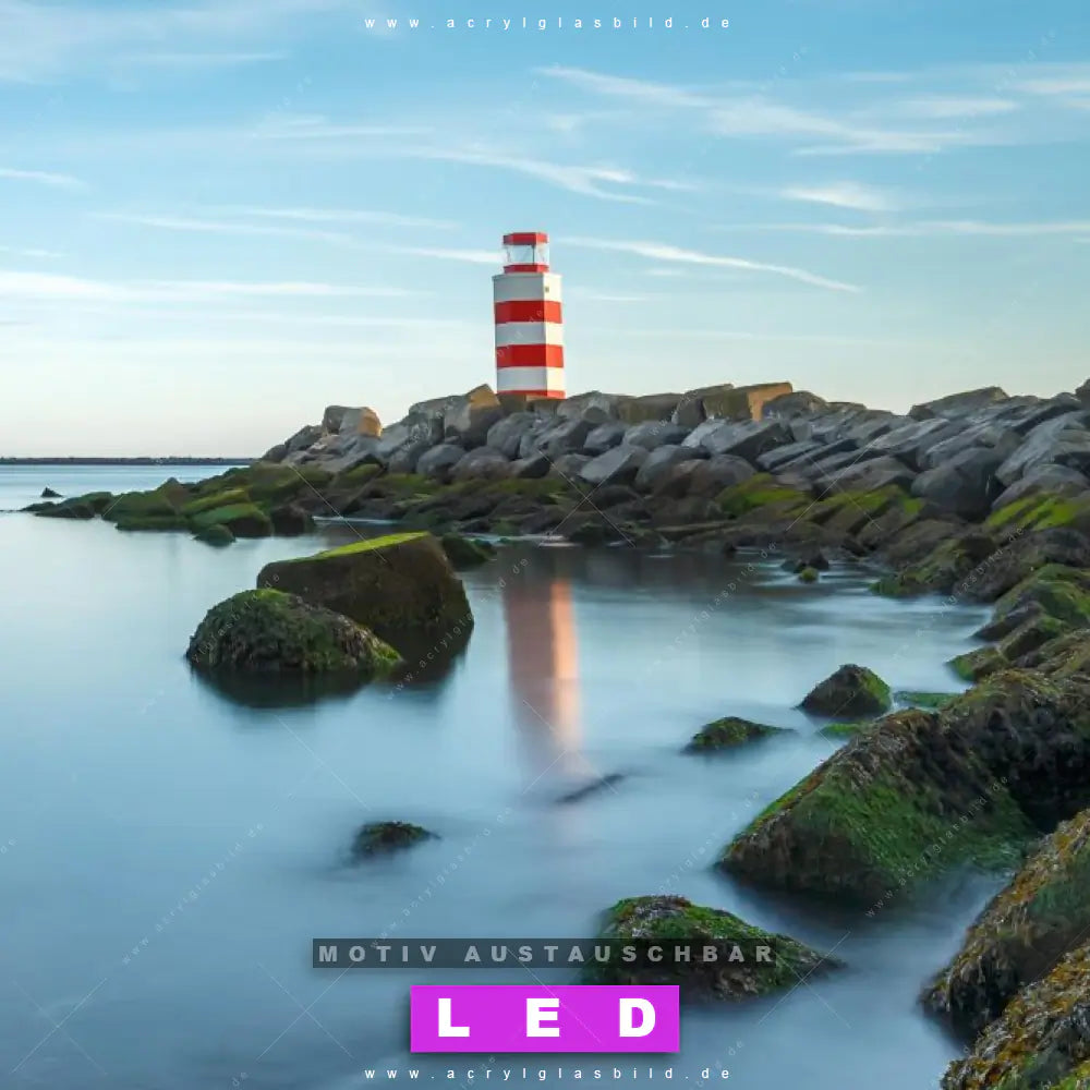 Du bist auf der Suche nach einem dimmbaren Strand - Meer, Landschaften LED Bild mit Fernbedienung und optionaler Farbtemperatursteuerung? Dann haben wir hier genau das richtige Wandbild mit LED Beleuchtung für dich: Unser Canvalight® DIA LED Acrylglasbild Leuchtturm an der Nordsee im Querformat mit austauschbarer bedruckter Acrylglas-Scheibe. Dieses Leuchtbild bringt sofort Partybeleuchtung in deine Räume!